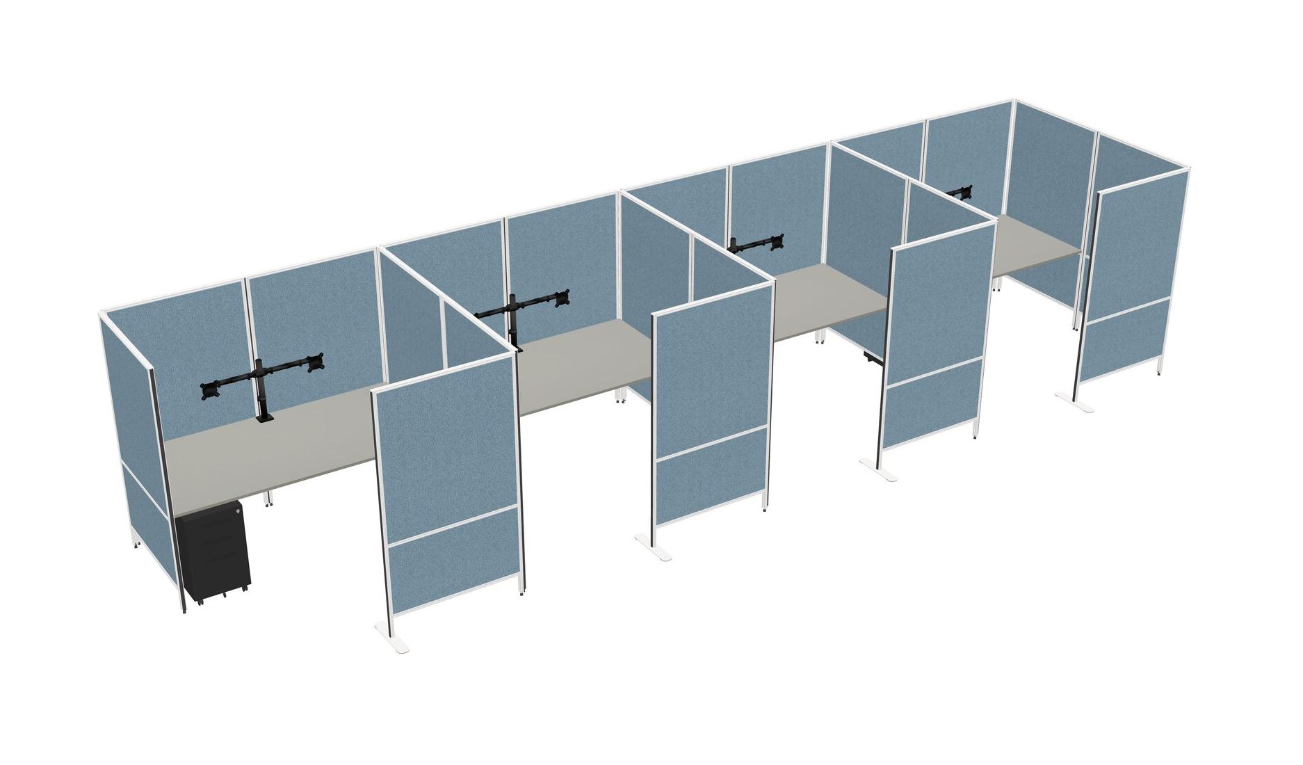 Système De Panneaux Flexibles Grey Shadows Avec Intimité Pour 4 Personnes + Tiroirs Mobiles En Métal + Bras D'écran (bras Doubles)