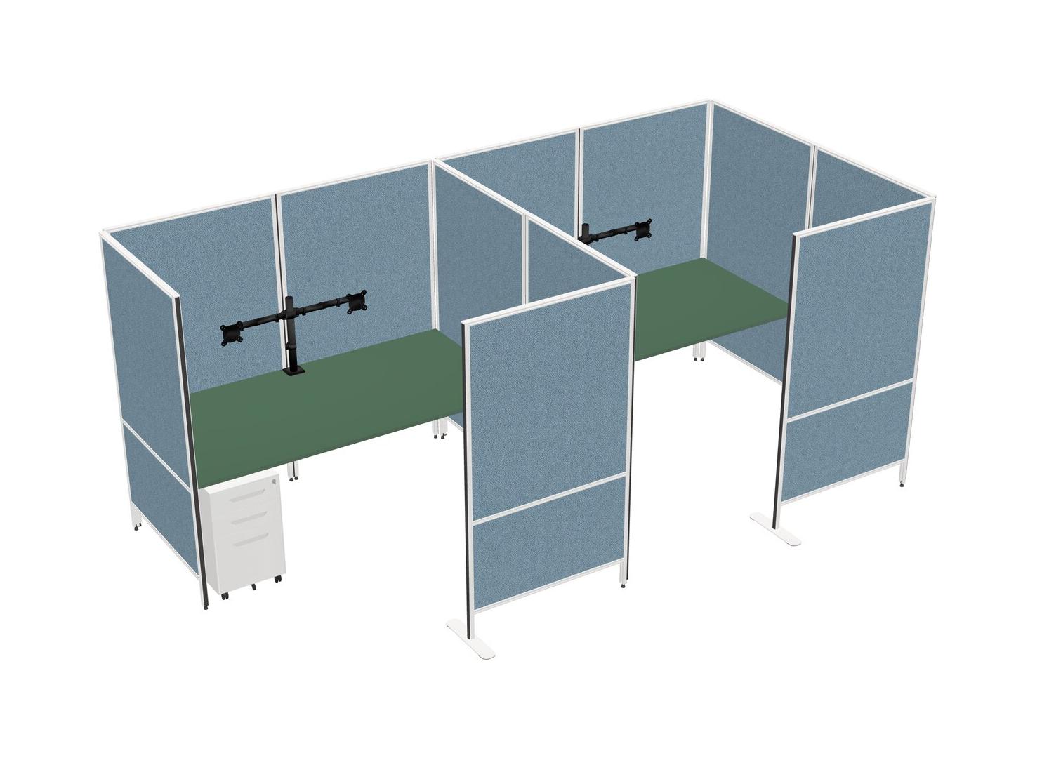 Système De Panneaux Flexibles Verts Avec Intimité Pour 2 Personnes + Tiroirs Mobiles En Métal + Bras D'écran (bras Doubles)