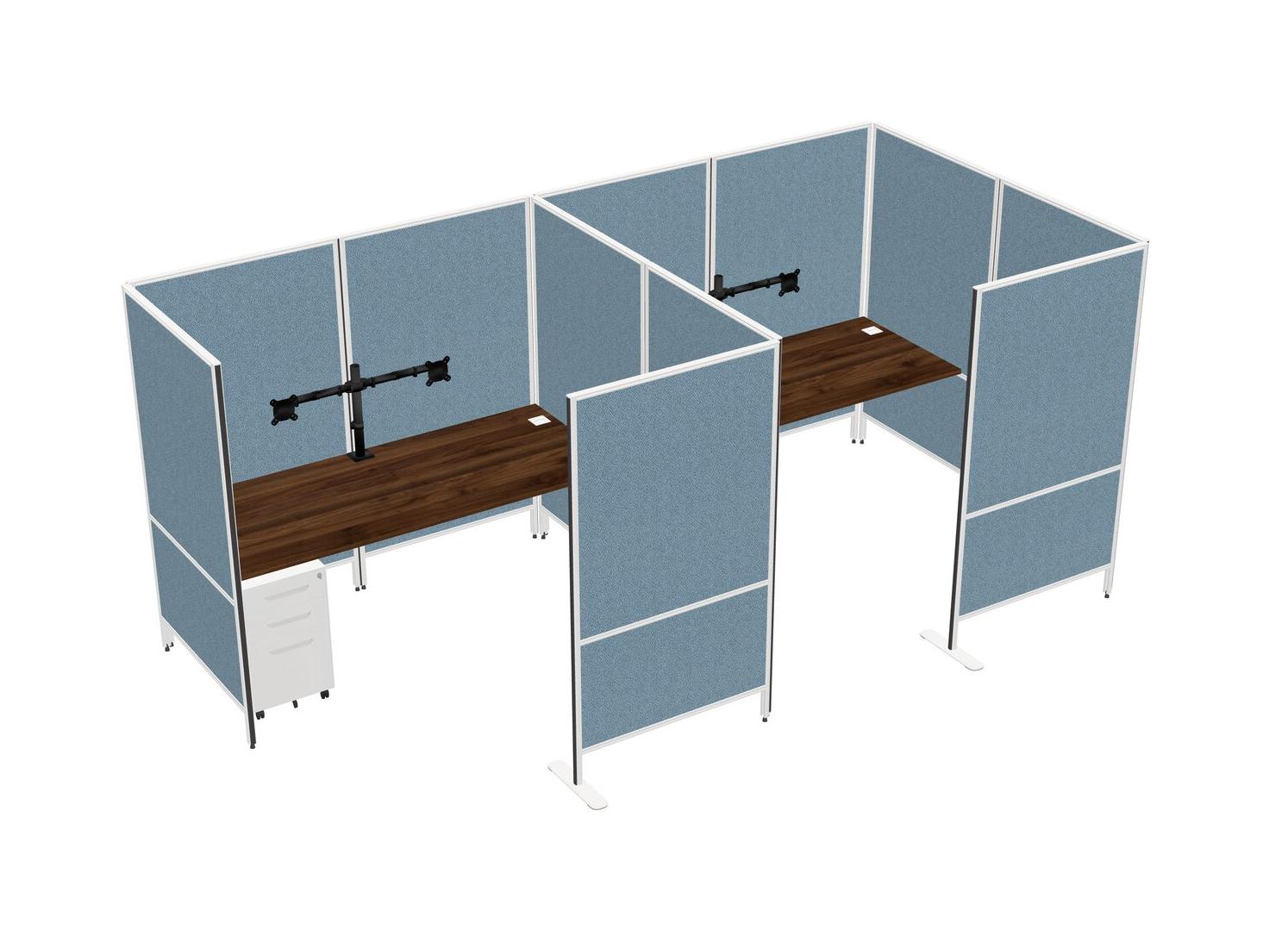 Système De Panneaux Flexibles En Noyer Columbia Avec Intimité Pour 2 Personnes + Tiroirs Mobiles En Métal + Bras Pour écran (double Bras)