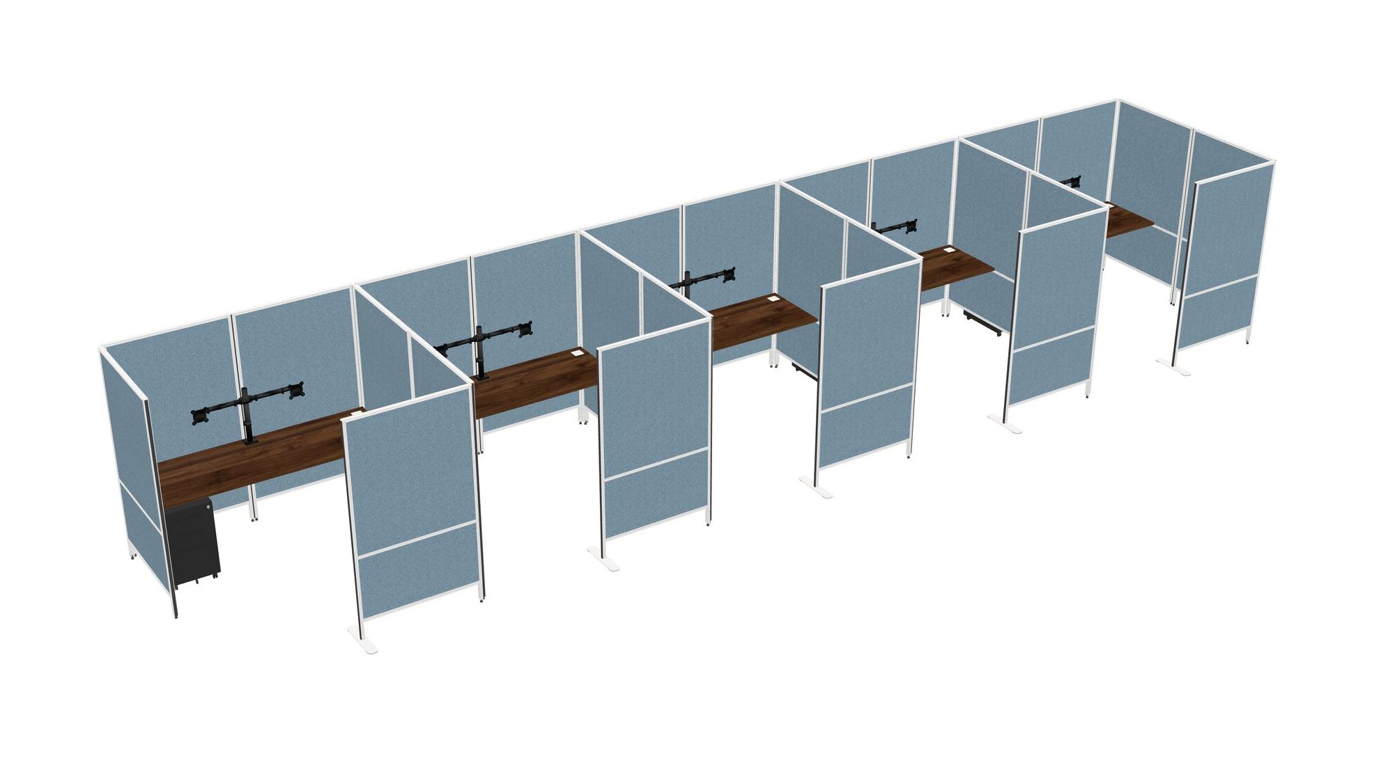Système De Panneaux Flexibles Columbia En Noyer Avec Intimité Pour 5 Personnes + Tiroirs Mobiles En Métal + Bras Pour écran (double Bras)