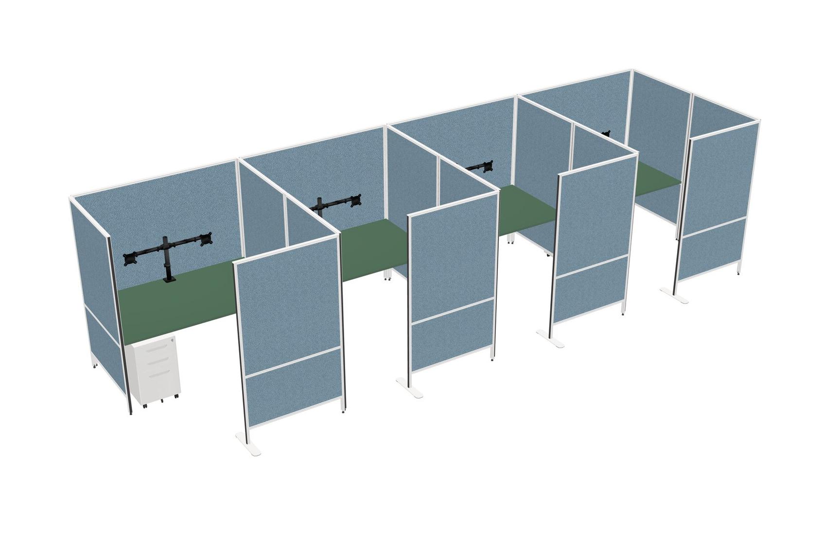 Système De Panneaux Flexibles Verts Avec Intimité Pour 4 Personnes + Tiroirs Mobiles En Métal + Bras D'écran (bras Doubles)