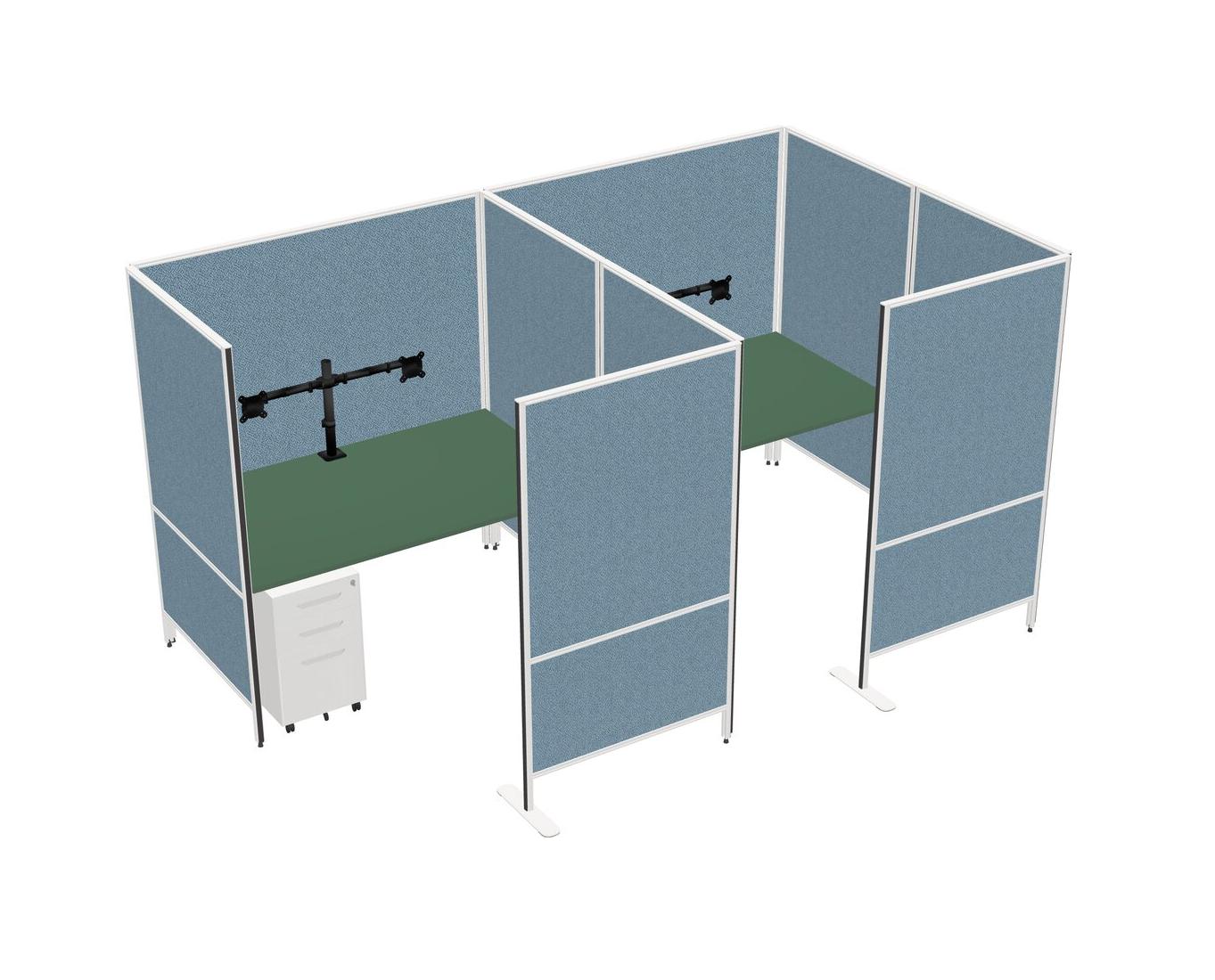 Système De Panneaux Flexibles Verts Avec Intimité Pour 2 Personnes + Tiroirs Mobiles En Métal + Bras D'écran (bras Doubles)
