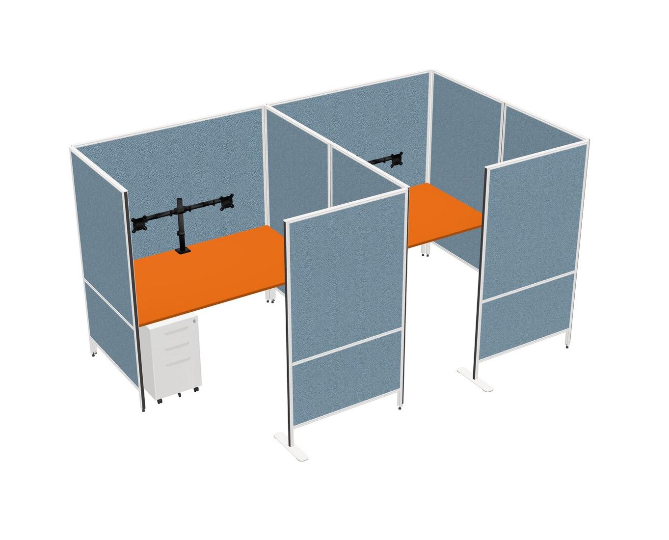 Système De Panneaux Flexibles Orange Avec Intimité Pour 2 Personnes + Tiroirs Mobiles En Métal + Bras D'écran (bras Doubles)