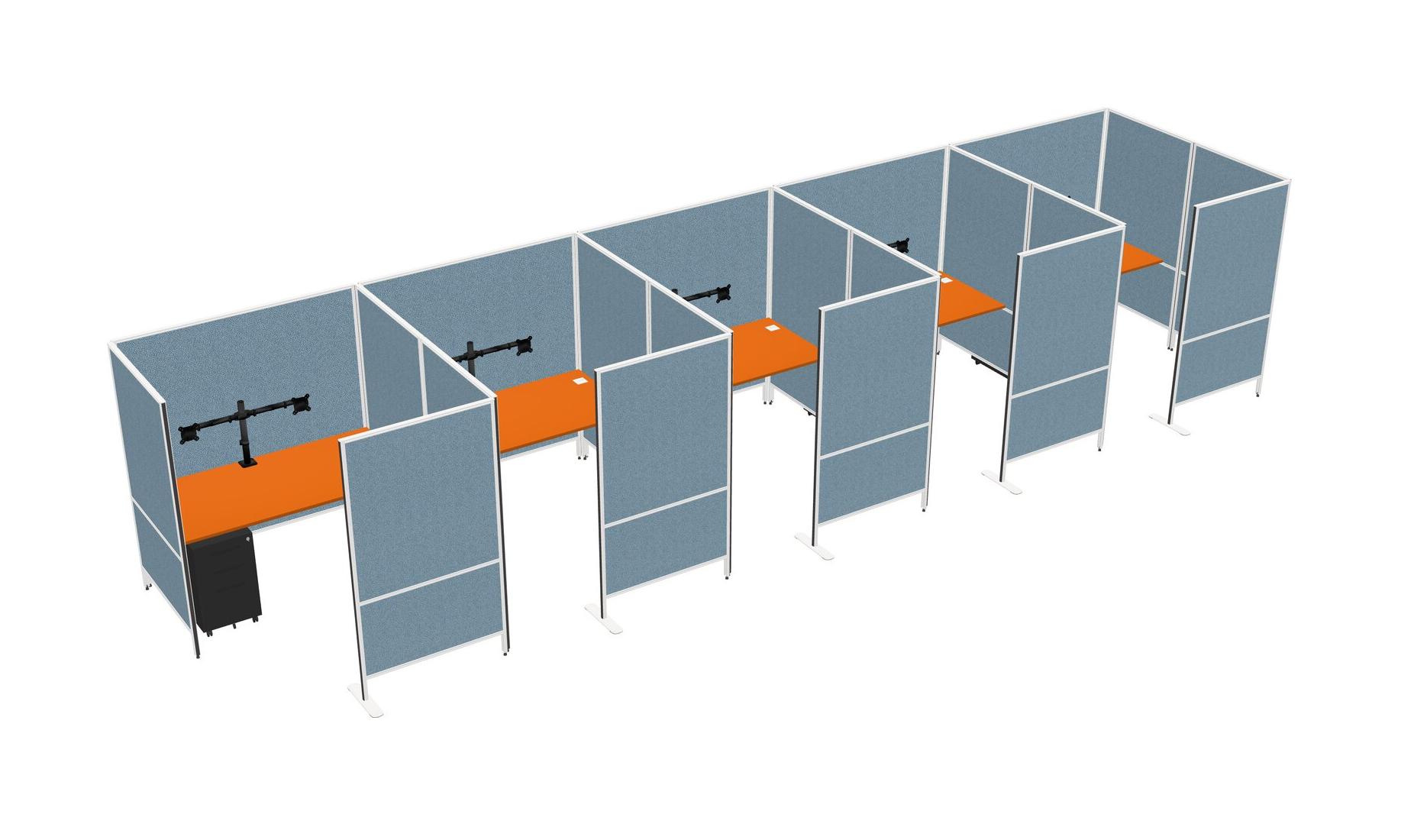 Système De Panneaux Flexibles Orange Avec Intimité Pour 5 Personnes + Tiroirs Mobiles En Métal + Bras D'écran (bras Doubles)
