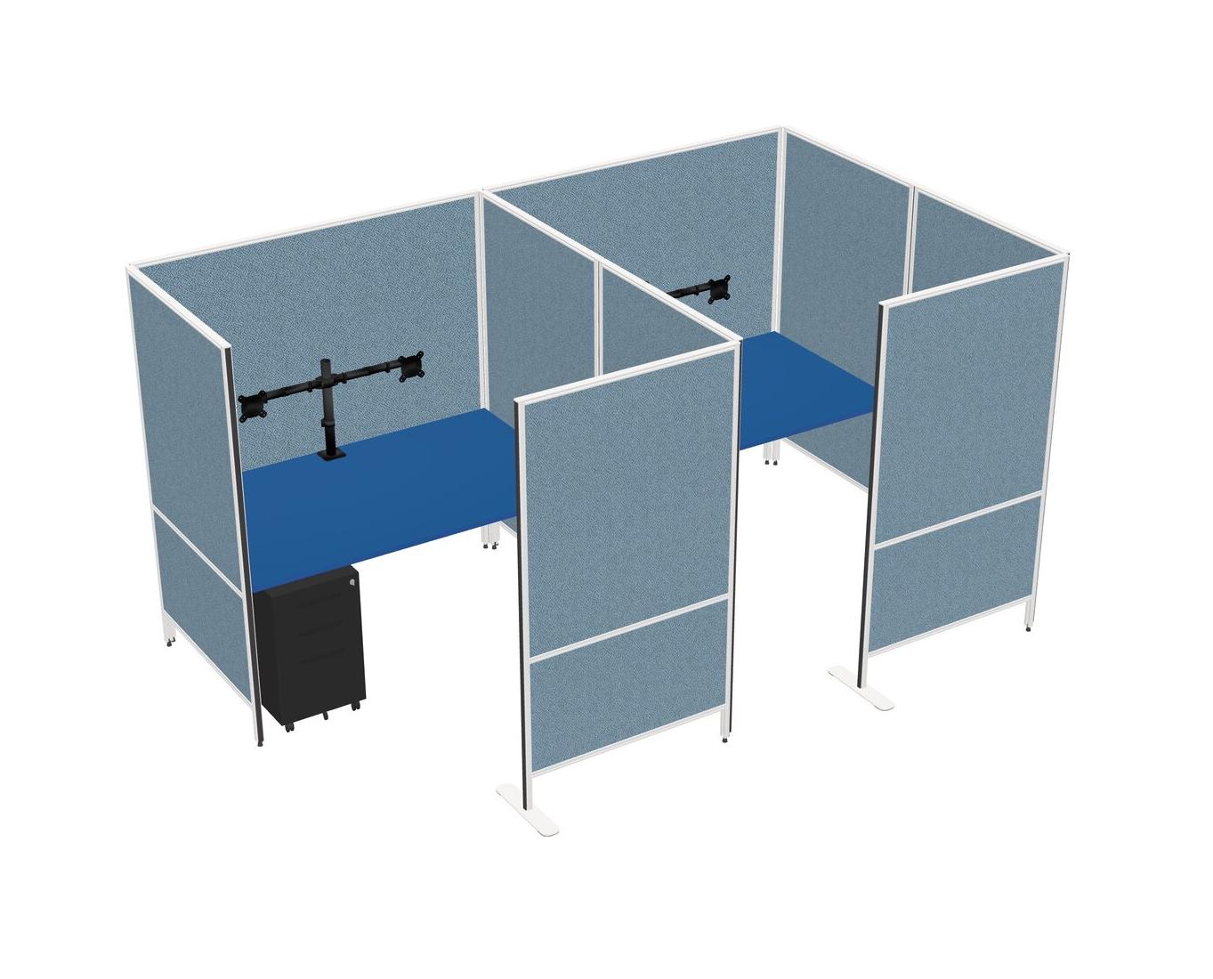 Système De Panneaux Flexibles Prism Blue Avec Intimité Pour 2 Personnes + Tiroirs Mobiles En Métal + Bras D'écran (bras Doubles)