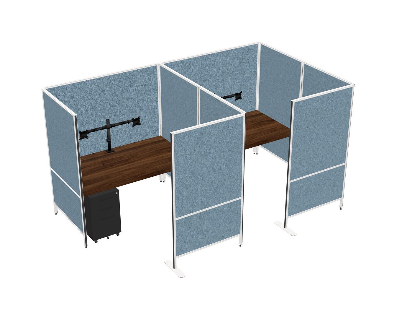 Système De Panneaux Flexibles En Noyer Columbia Avec Intimité Pour 2 Personnes + Tiroirs Mobiles En Métal + Bras Pour écran (double Bras)