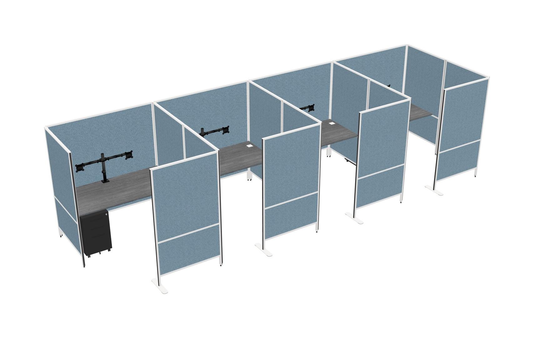 Système De Panneaux Flexibles Gris Avec Intimité Pour 4 Personnes + Tiroirs Mobiles En Métal + Bras Pour écran (double Bras)