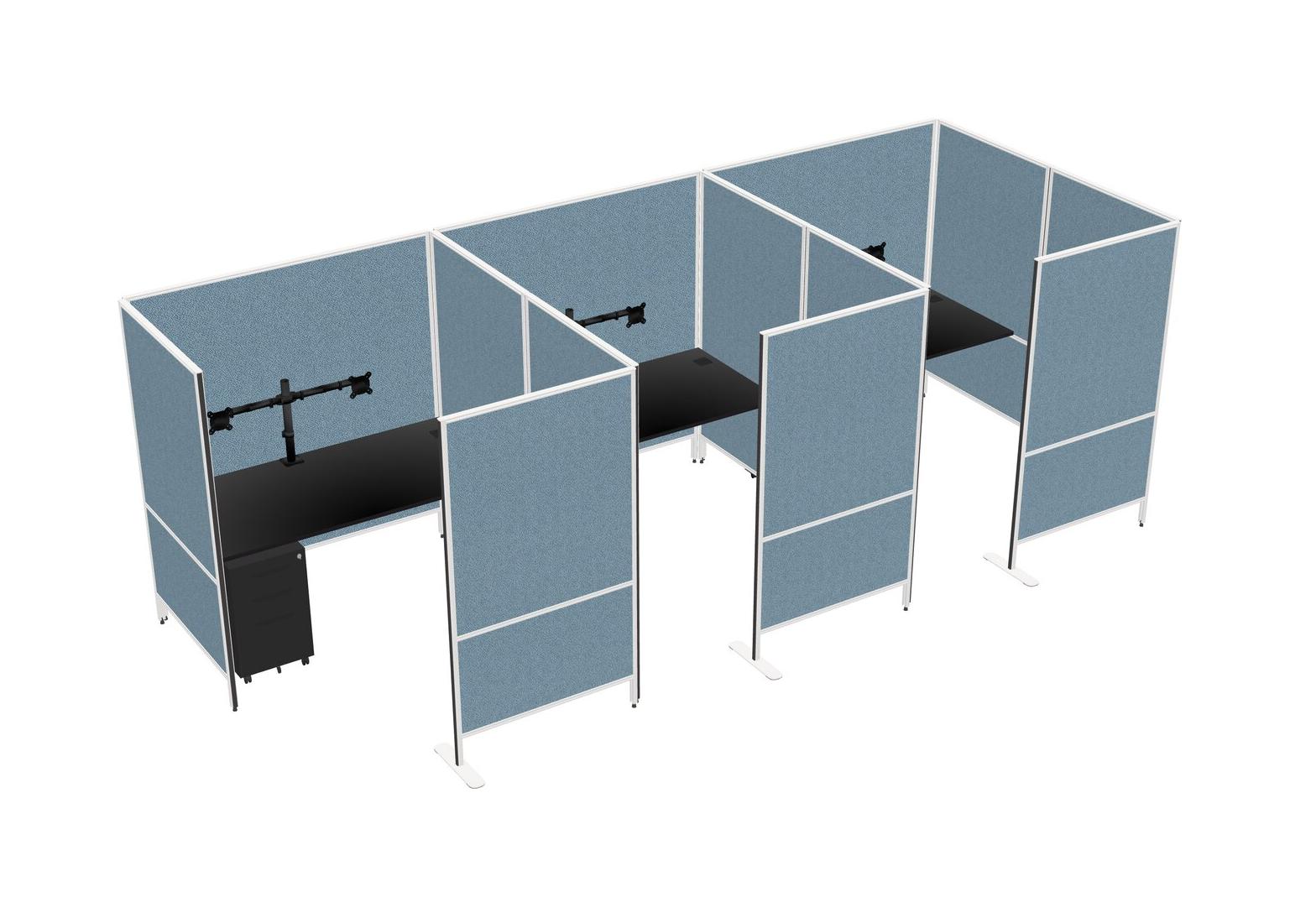 Système De Panneaux Flexibles Noirs Avec Intimité Pour 3 Personnes + Tiroirs Mobiles En Métal + Bras Pour écran (double Bras)
