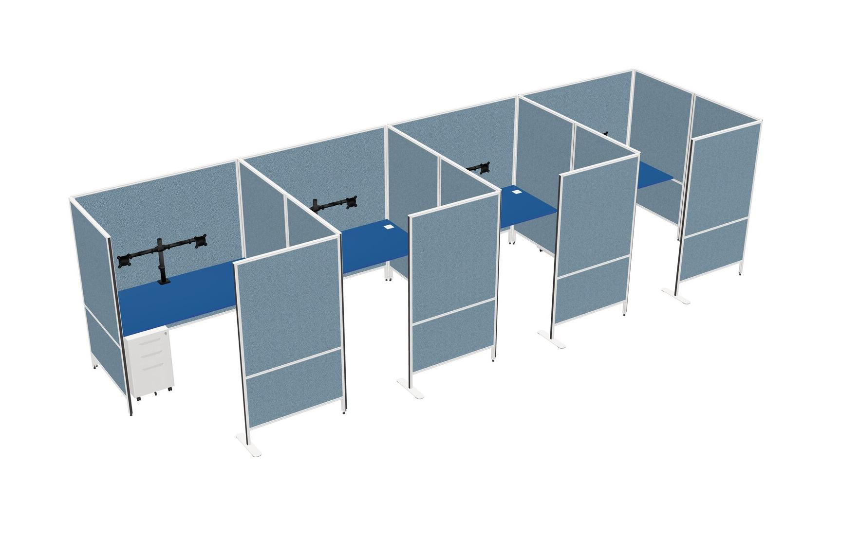 Système De Panneaux Flexibles Prism Blue Avec Intimité Pour 4 Personnes + Tiroirs Mobiles En Métal + Bras D'écran (bras Doubles)