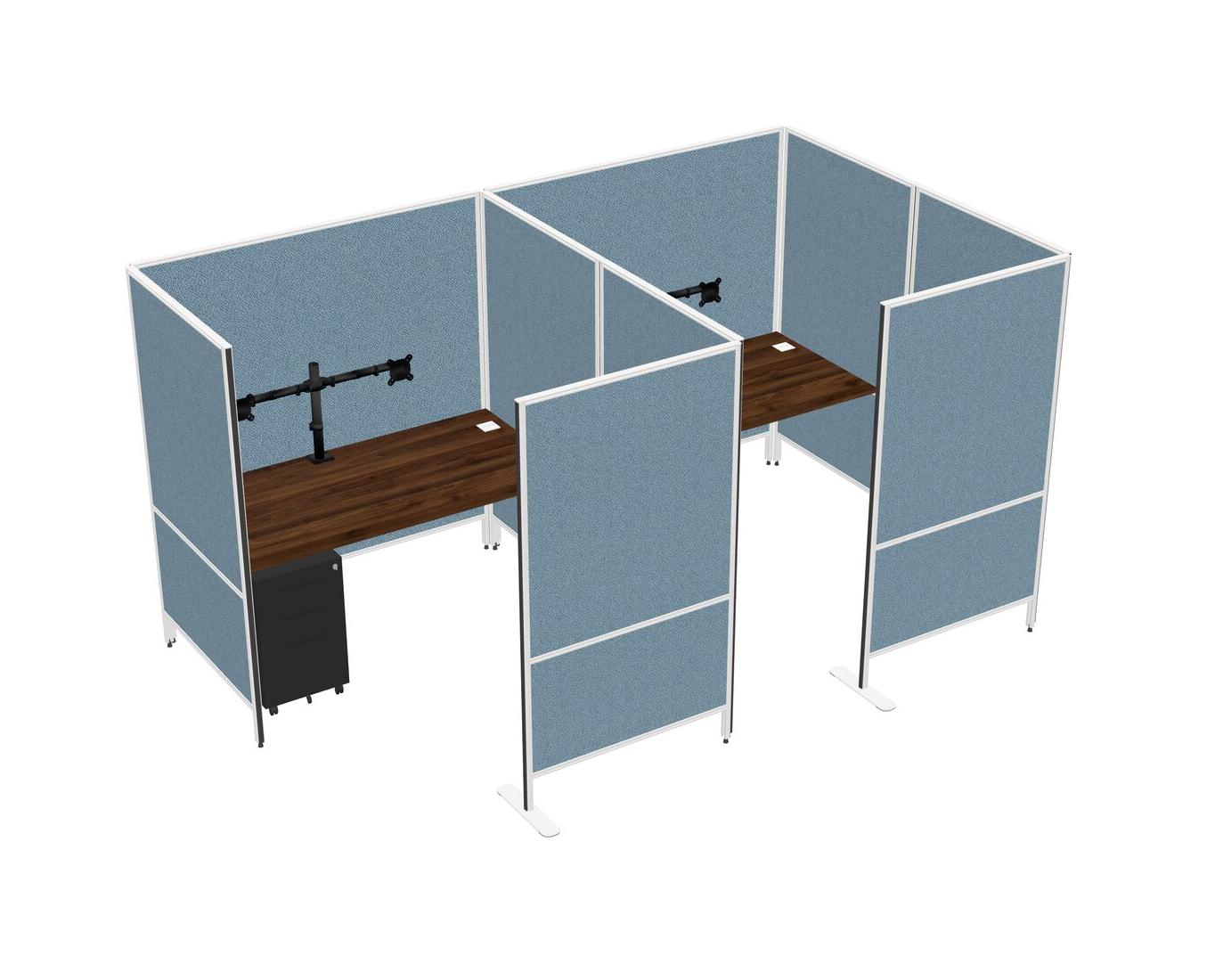 Système De Panneaux Flexibles En Noyer Columbia Avec Intimité Pour 2 Personnes + Tiroirs Mobiles En Métal + Bras Pour écran (double Bras)