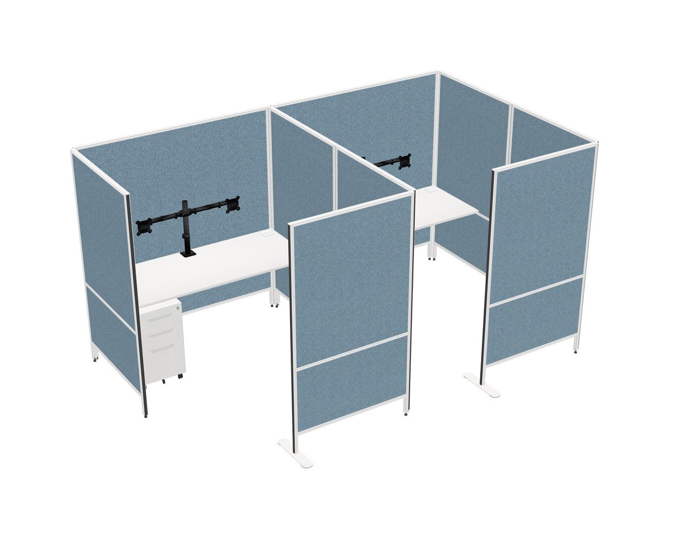 Système De Panneaux Flexibles Blancs Avec Intimité Pour 2 Personnes + Tiroirs Mobiles En Métal + Bras D'écran (bras Doubles)