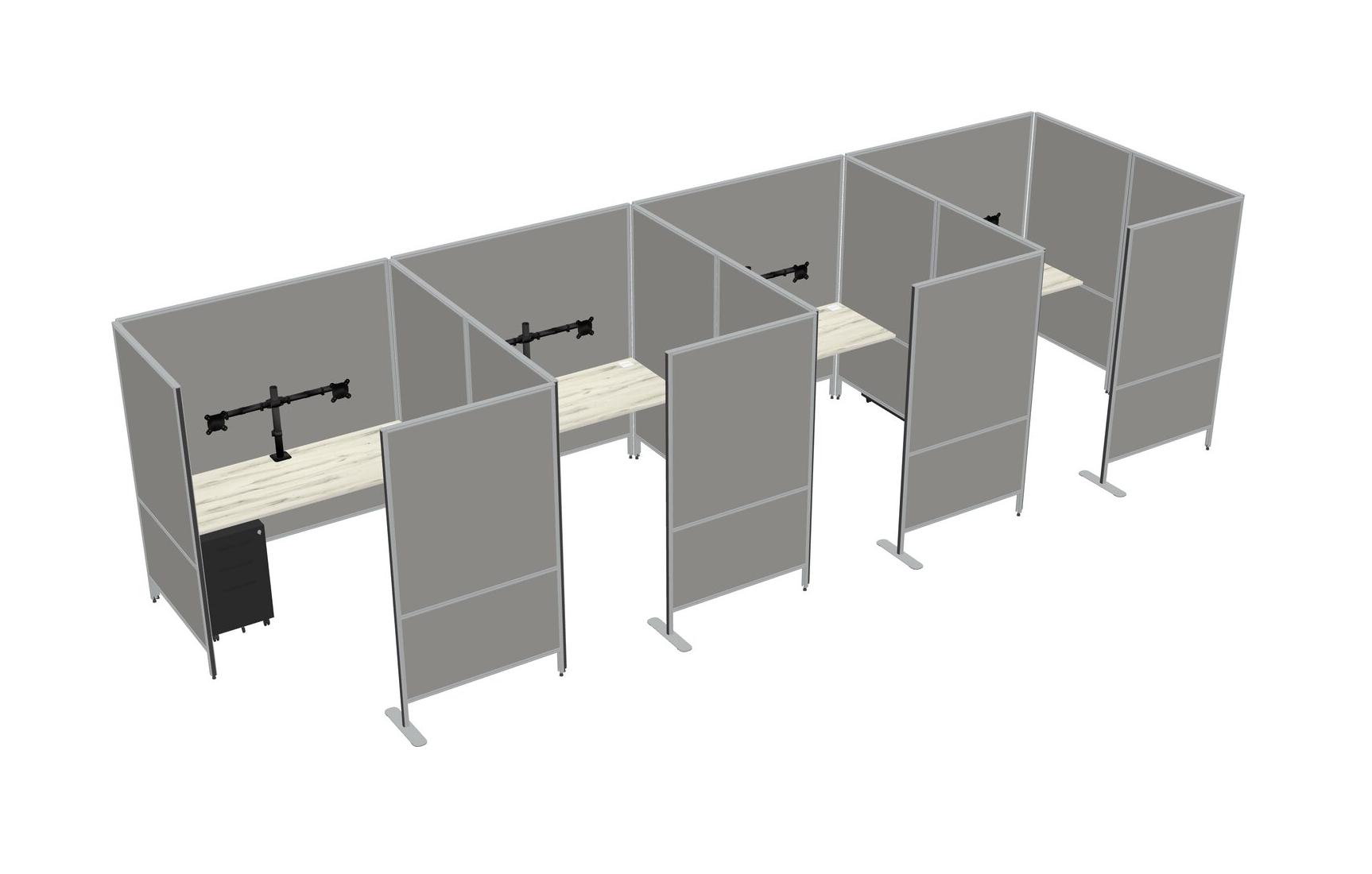 Système De Panneaux Flexibles Heinne Holz Avec Intimité Pour 4 Personnes + Tiroirs Mobiles En Métal + Bras Pour écran (double Bras)