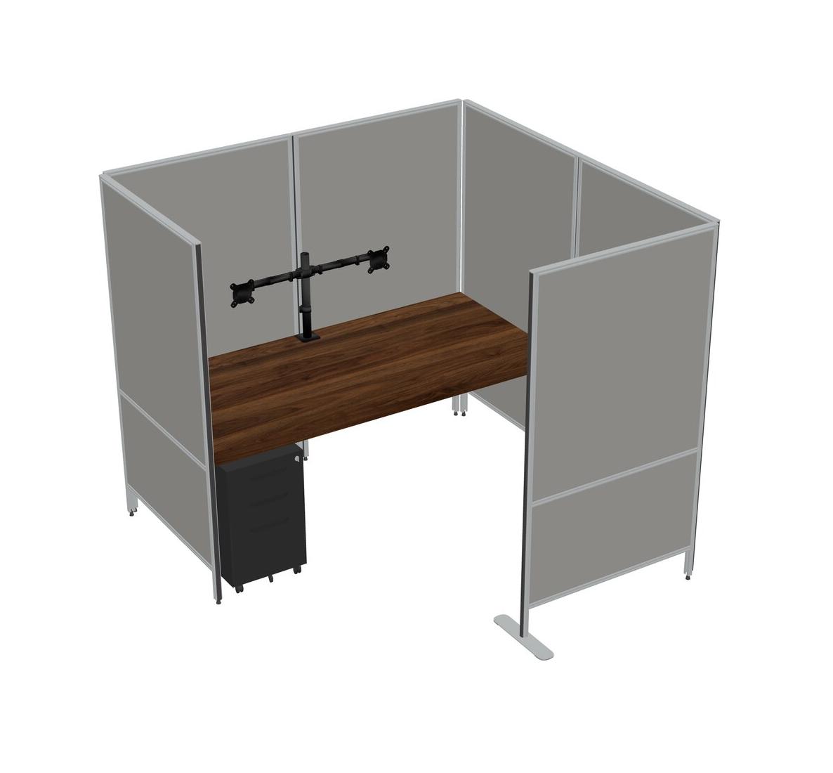 Système De Panneaux Flexibles En Noyer Columbia Avec Intimité Pour 1 Personne + Tiroirs Mobiles En Métal + Bras Pour écran (double Bras)