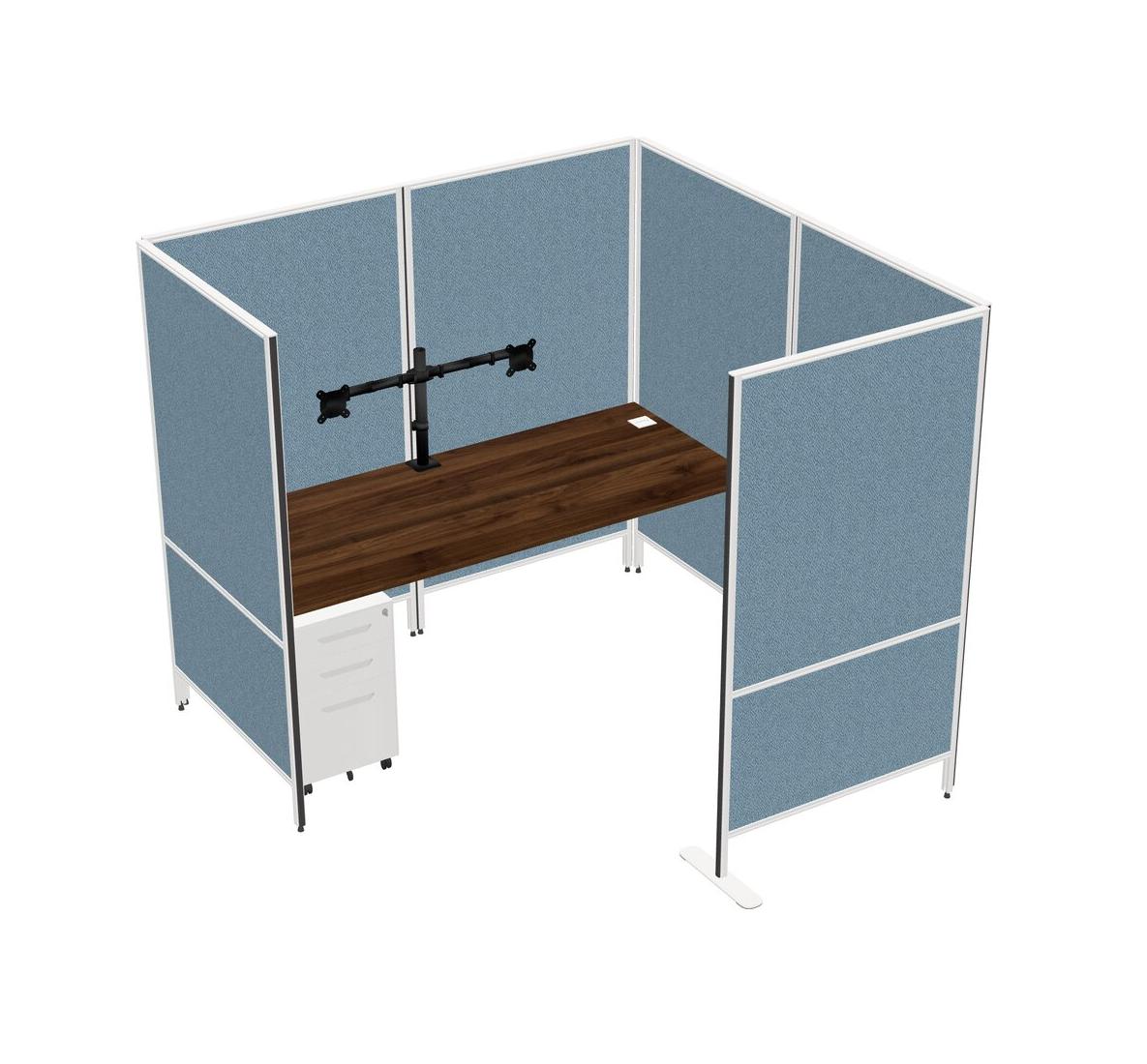 Système De Panneaux Flexibles En Noyer Columbia Avec Intimité Pour 1 Personne + Tiroirs Mobiles En Métal + Bras Pour écran (double Bras)