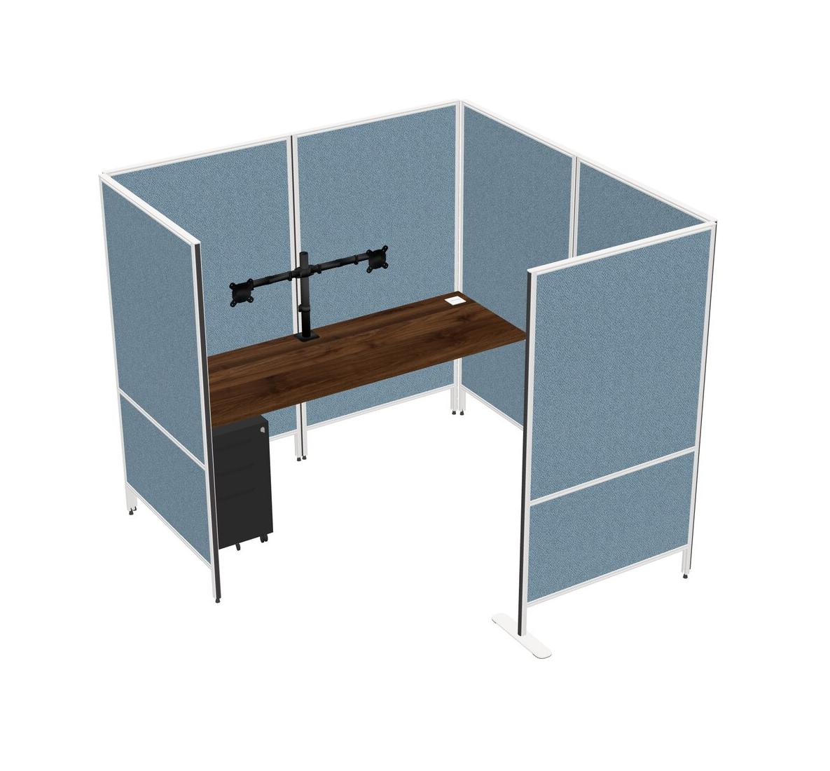 Système De Panneaux Flexibles En Noyer Columbia Avec Intimité Pour 1 Personne + Tiroirs Mobiles En Métal + Bras Pour écran (double Bras)