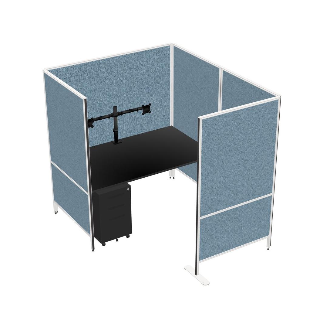 Système De Panneaux Flexibles Noirs Avec Intimité Pour 1 Personne + Tiroirs Mobiles En Métal + Bras Pour écran (double Bras)