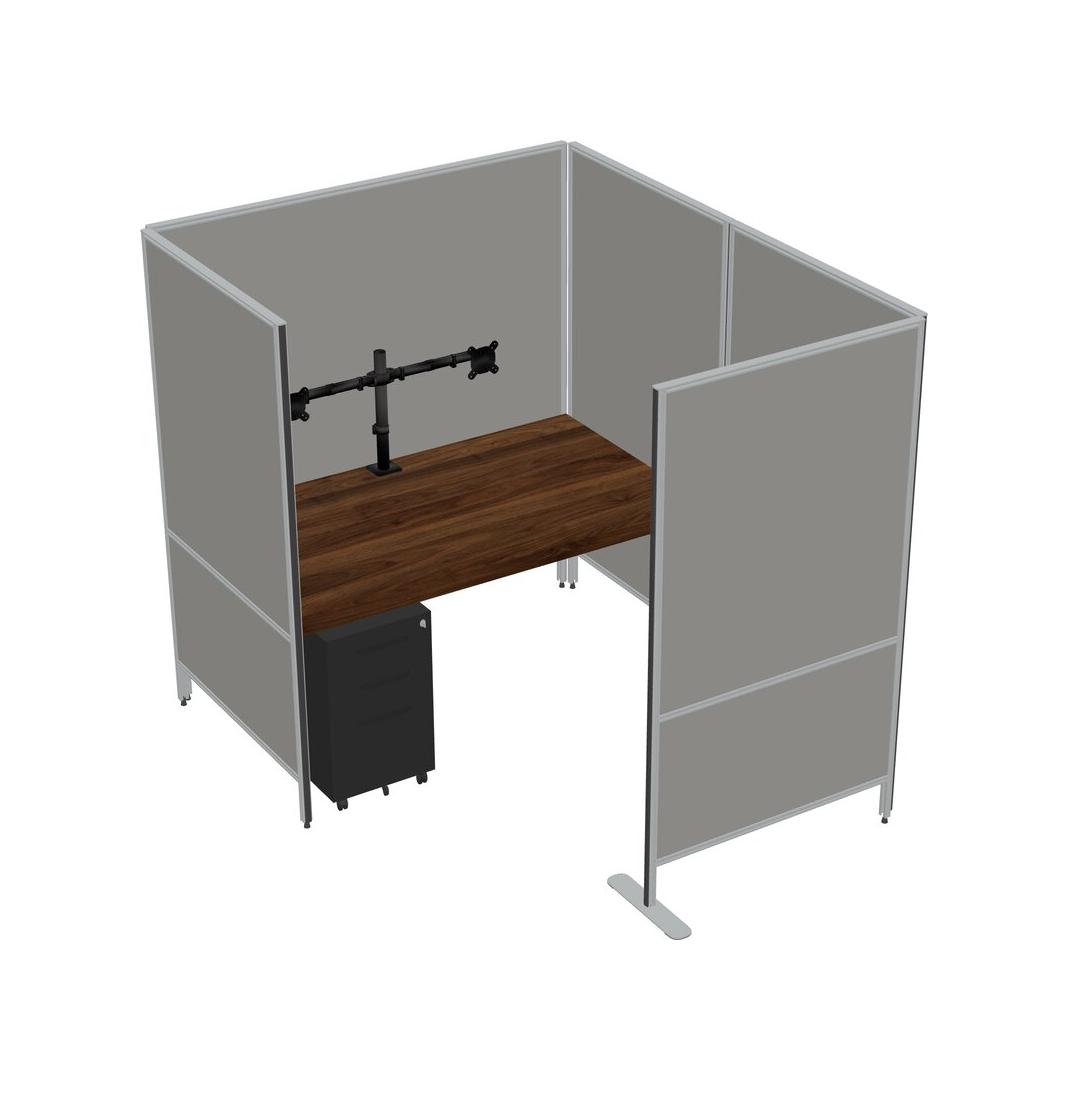 Système De Panneaux Flexibles En Noyer Columbia Avec Intimité Pour 1 Personne + Tiroirs Mobiles En Métal + Bras Pour écran (double Bras)
