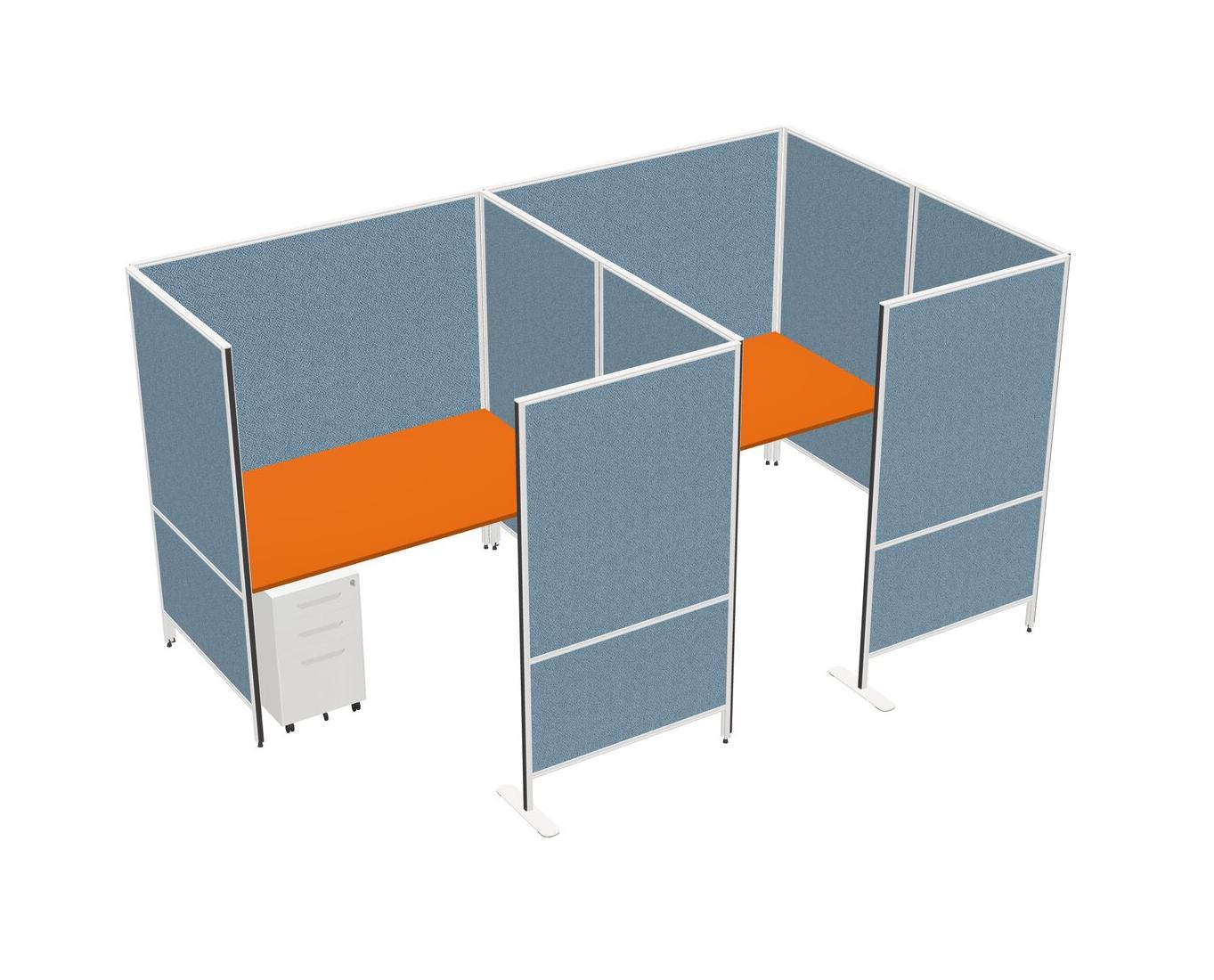 Système De Panneaux Flexibles Orange Avec Intimité Pour 2 + Tiroirs Mobiles En Métal
