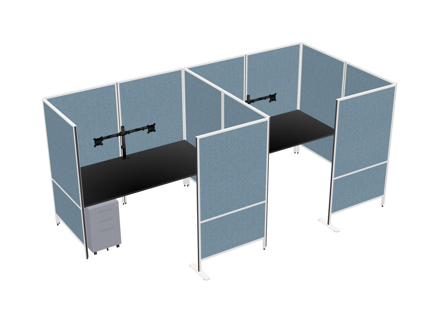 Système De Panneaux Flexibles Noirs Avec Intimité Pour 2 Personnes + Tiroirs Mobiles En Métal + Bras Pour écran (double Bras)