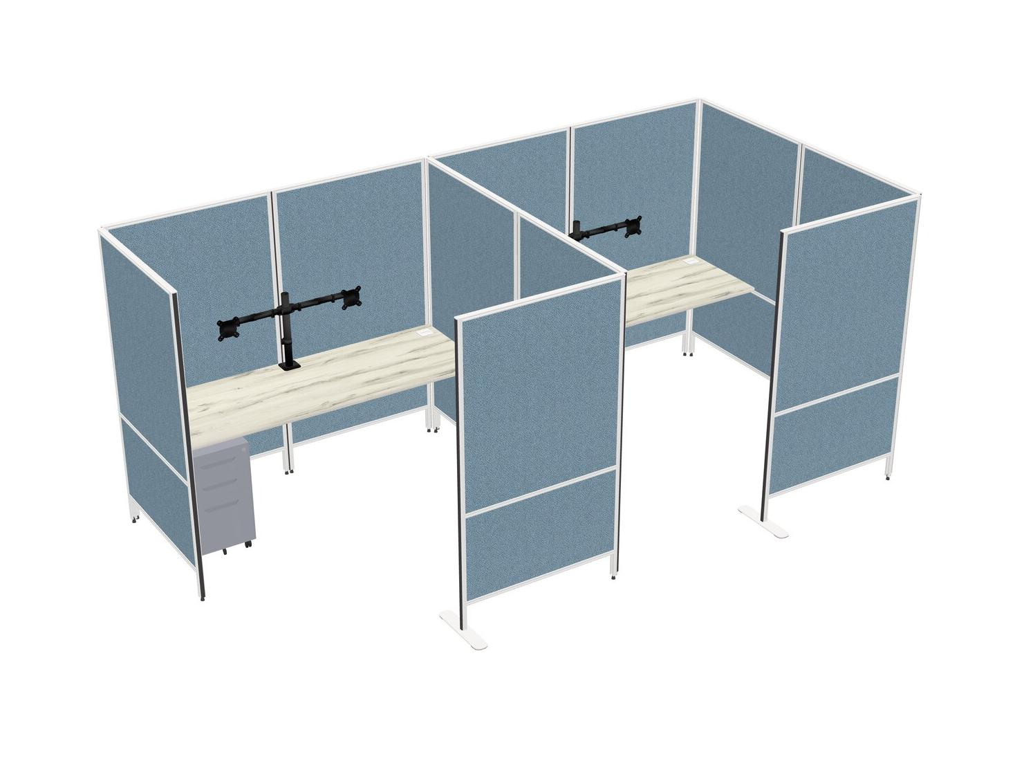 Système De Panneaux Flexibles Heinne Holz Avec Intimité Pour 2 Personnes + Tiroirs Mobiles En Métal + Bras Pour écran (double Bras)