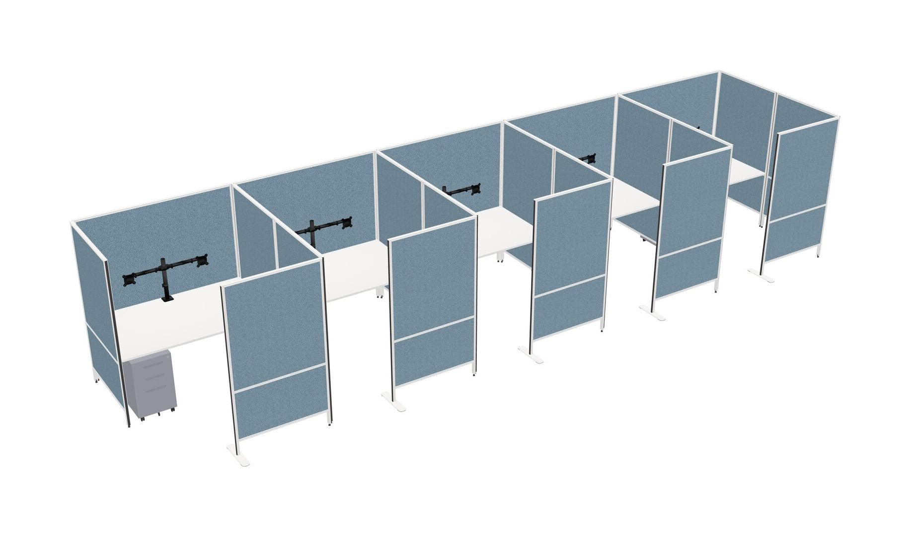 Système De Panneaux Flexibles Blancs Avec Intimité Pour 5 Personnes + Tiroirs Mobiles En Métal + Bras D'écran (bras Doubles)