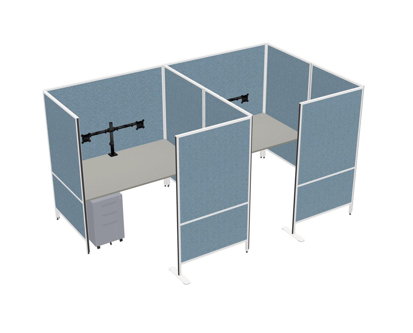 Système De Panneaux Flexibles Grey Shadows Avec Intimité Pour 2 Personnes + Tiroirs Mobiles En Métal + Bras D'écran (bras Doubles)