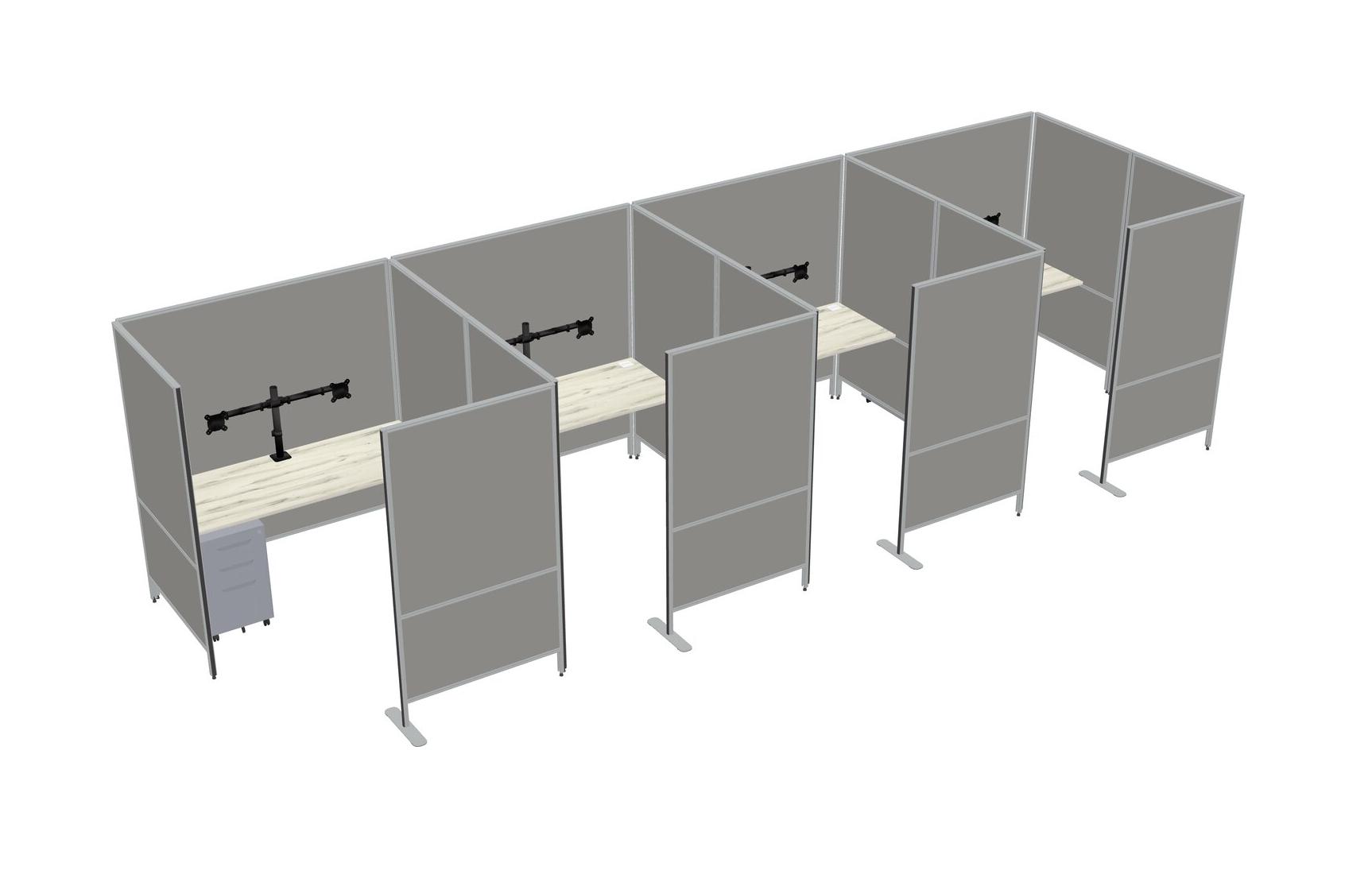 Système De Panneaux Flexibles Heinne Holz Avec Intimité Pour 4 Personnes + Tiroirs Mobiles En Métal + Bras Pour écran (double Bras)