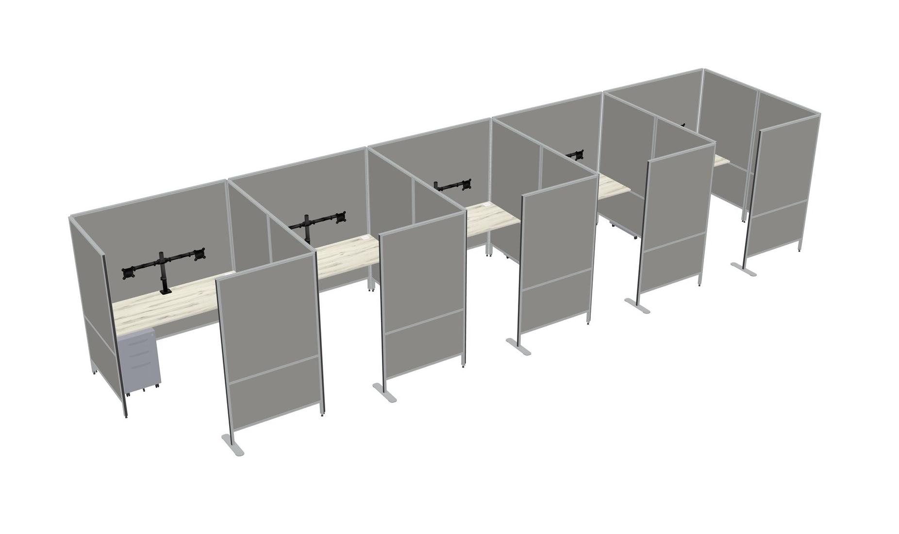 Système De Panneaux Flexibles Heinne Holz Avec Intimité Pour 5 Personnes + Tiroirs Mobiles En Métal + Bras Pour écran (double Bras)