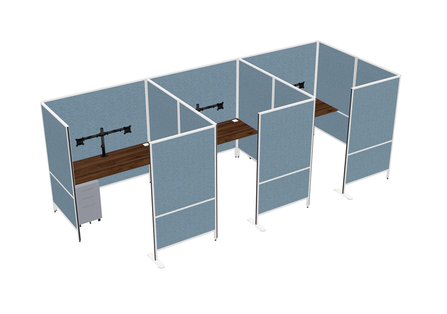 Système De Panneaux Flexibles En Noyer Columbia Avec Intimité Pour 3 Personnes + Tiroirs Mobiles En Métal + Bras Pour écran (double Bras)