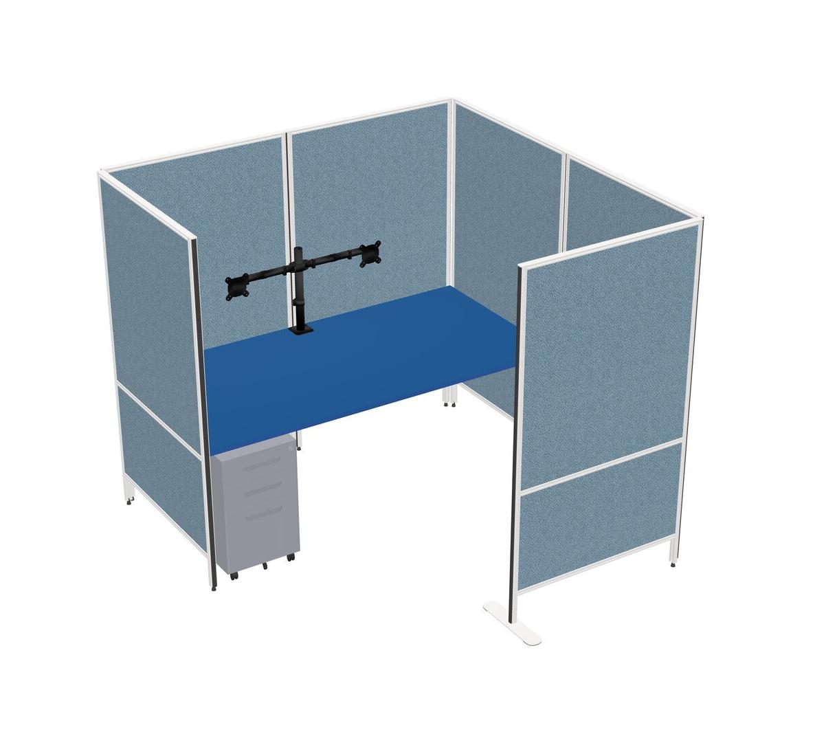 Système De Panneaux Flexibles Prism Blue Avec Intimité Pour 1 Personne + Tiroirs Mobiles En Métal + Bras D'écran (bras Doubles)