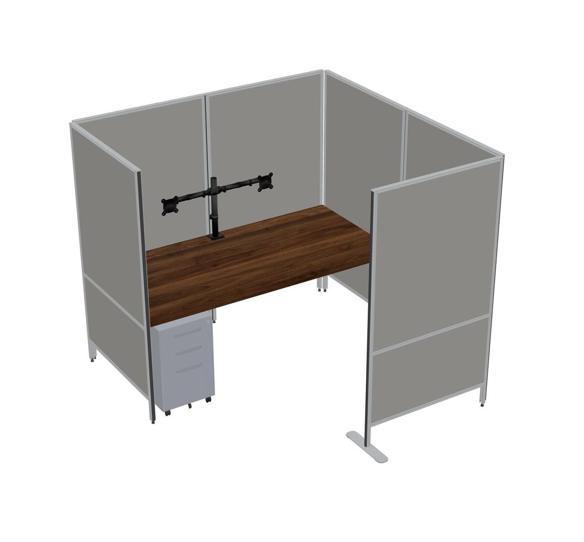 Système De Panneaux Flexibles En Noyer Columbia Avec Intimité Pour 1 Personne + Tiroirs Mobiles En Métal + Bras Pour écran (double Bras)
