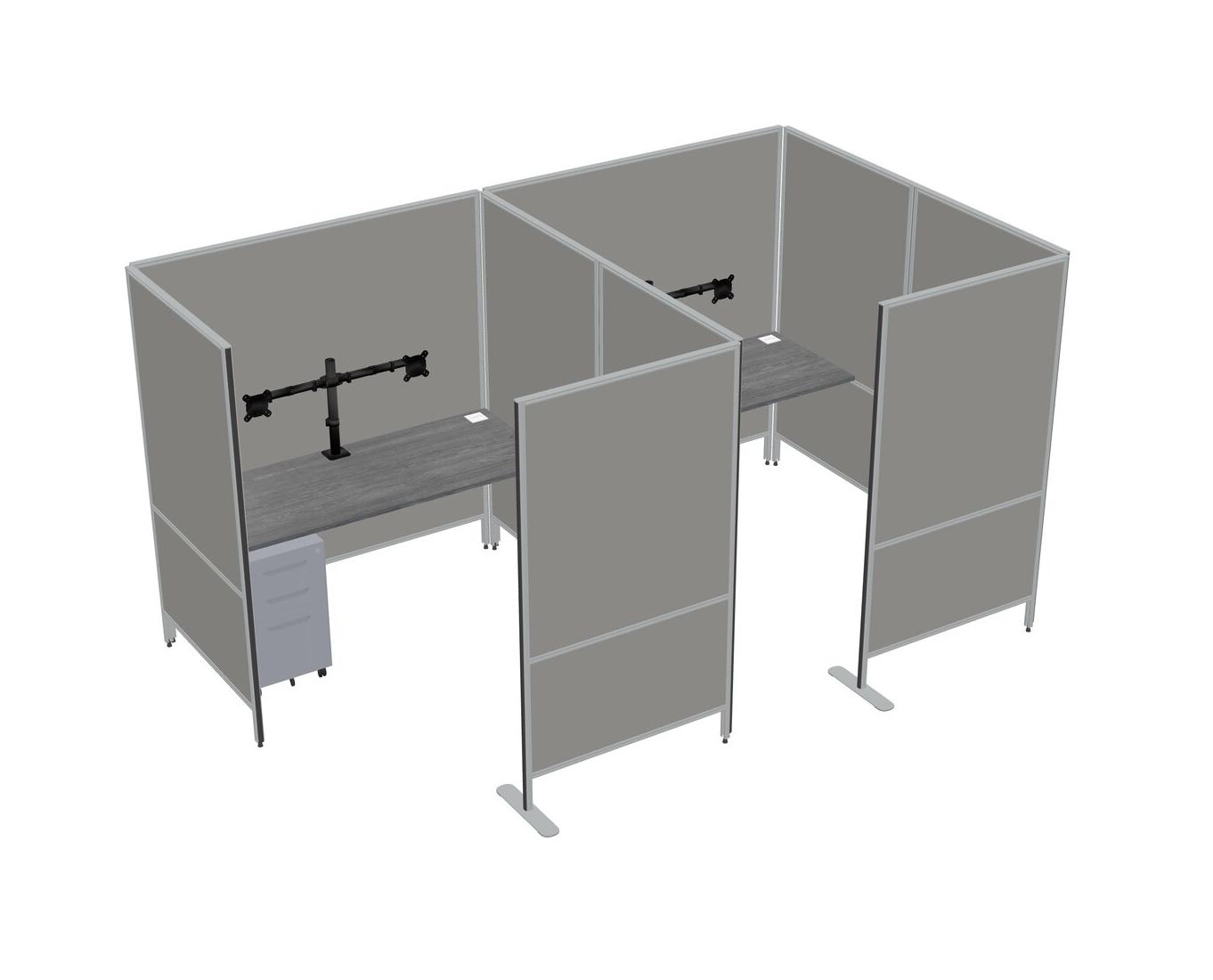 Système De Panneaux Flexibles Gris Avec Intimité Pour 2 Personnes + Tiroirs Mobiles En Métal + Bras Pour écran (double Bras)
