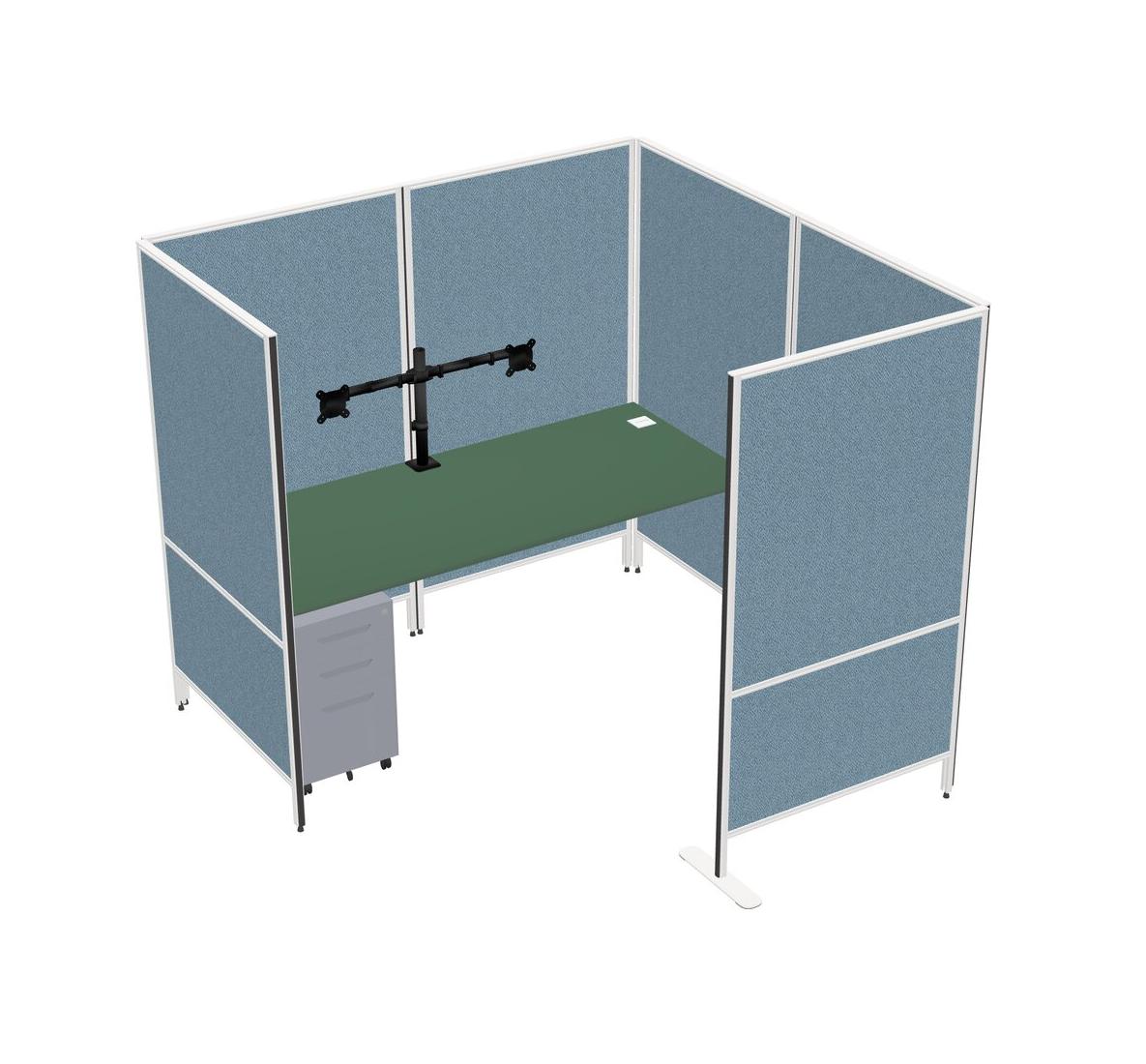 Système De Panneaux Flexibles Verts Avec Intimité Pour 1 Personne + Tiroirs Mobiles En Métal + Bras D'écran (bras Doubles)