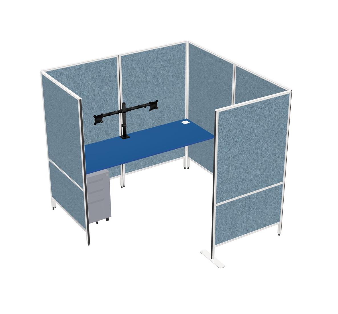 Système De Panneaux Flexibles Prism Blue Avec Intimité Pour 1 Personne + Tiroirs Mobiles En Métal + Bras D'écran (bras Doubles)