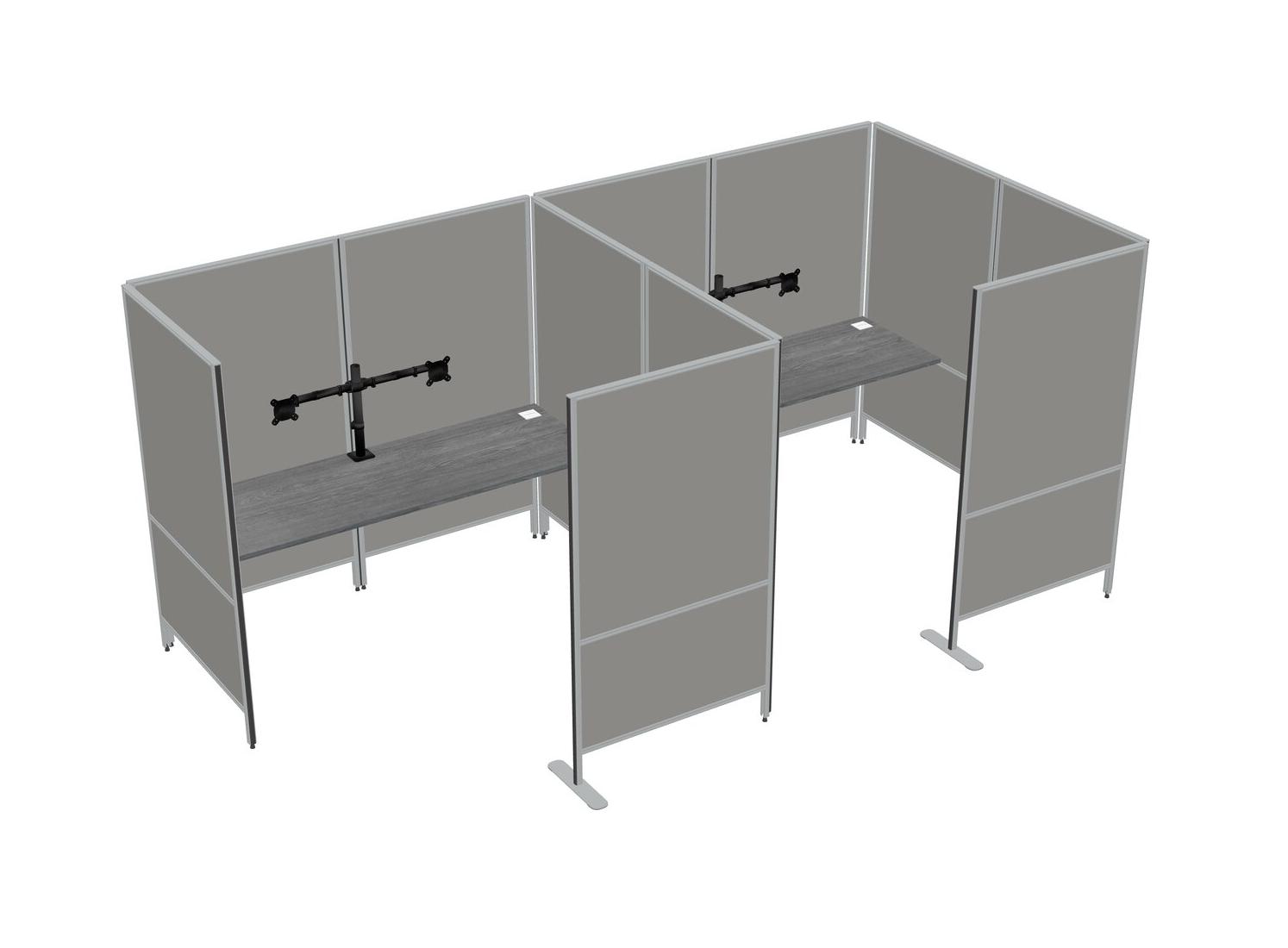 Système De Panneaux Flexibles Gris Avec Intimité Pour 2 Personnes + Bras Pour écran (bras Doubles)
