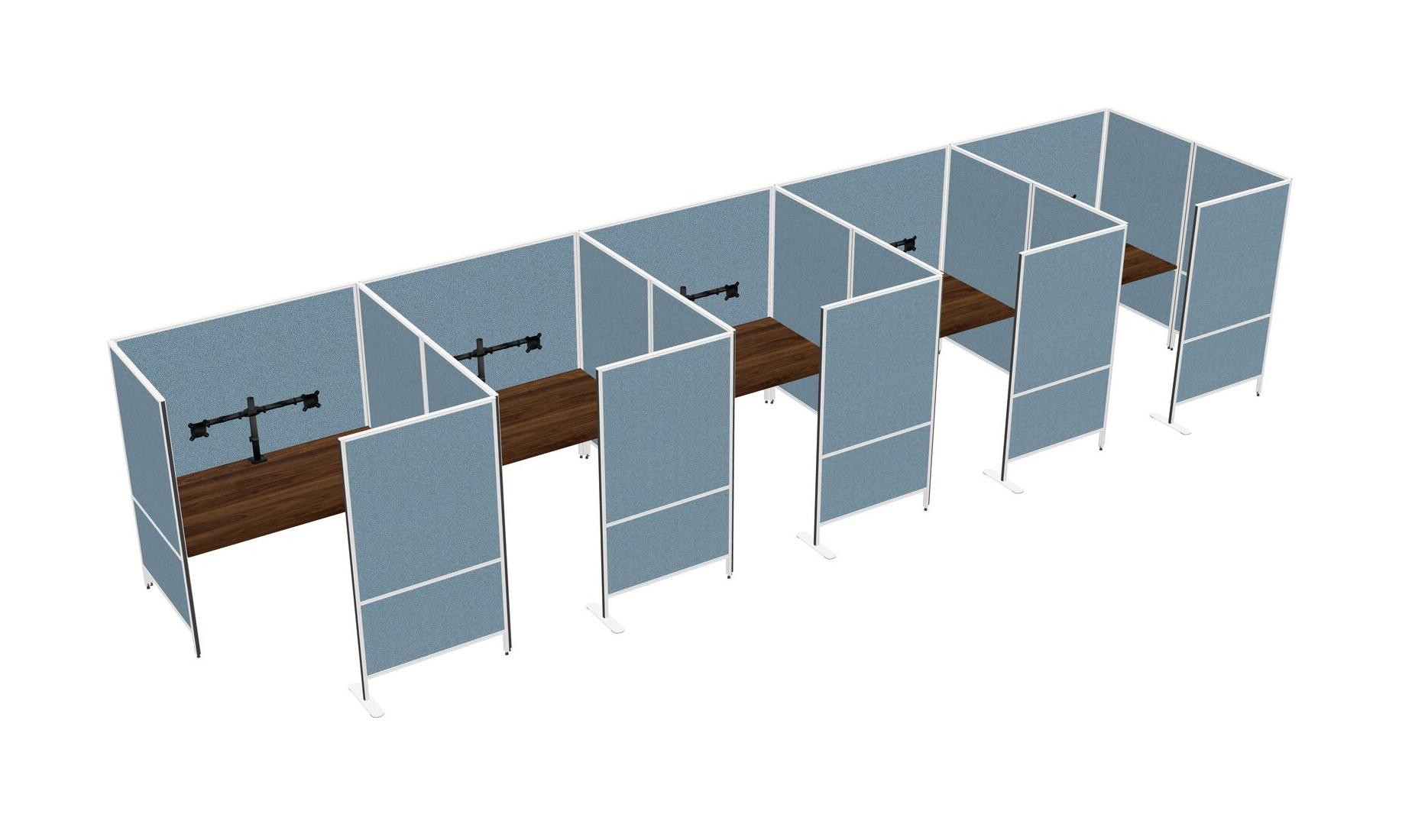 Système De Panneaux Flexibles Columbia En Noyer Avec Intimité Pour 5 écrans + Bras Pour Moniteur (bras Doubles)