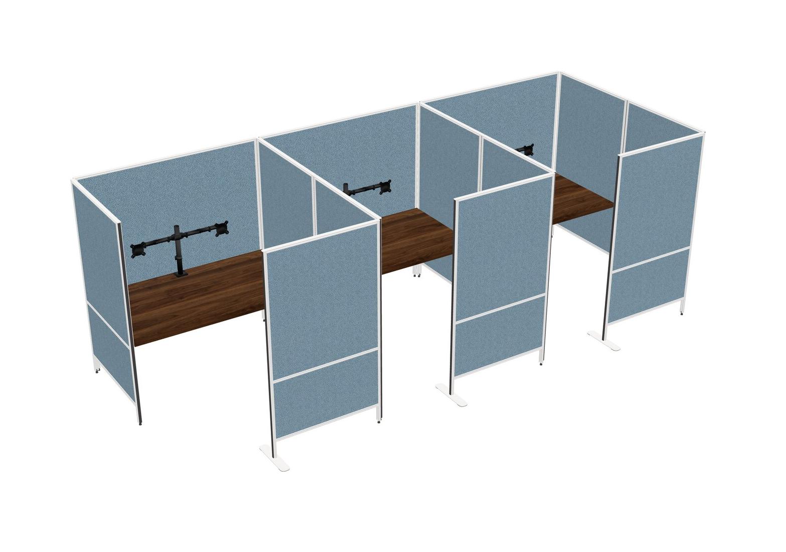 Système De Panneaux Flexibles Columbia En Noyer Avec Intimité Pour 3 écrans + Bras Pour Moniteur (bras Doubles)