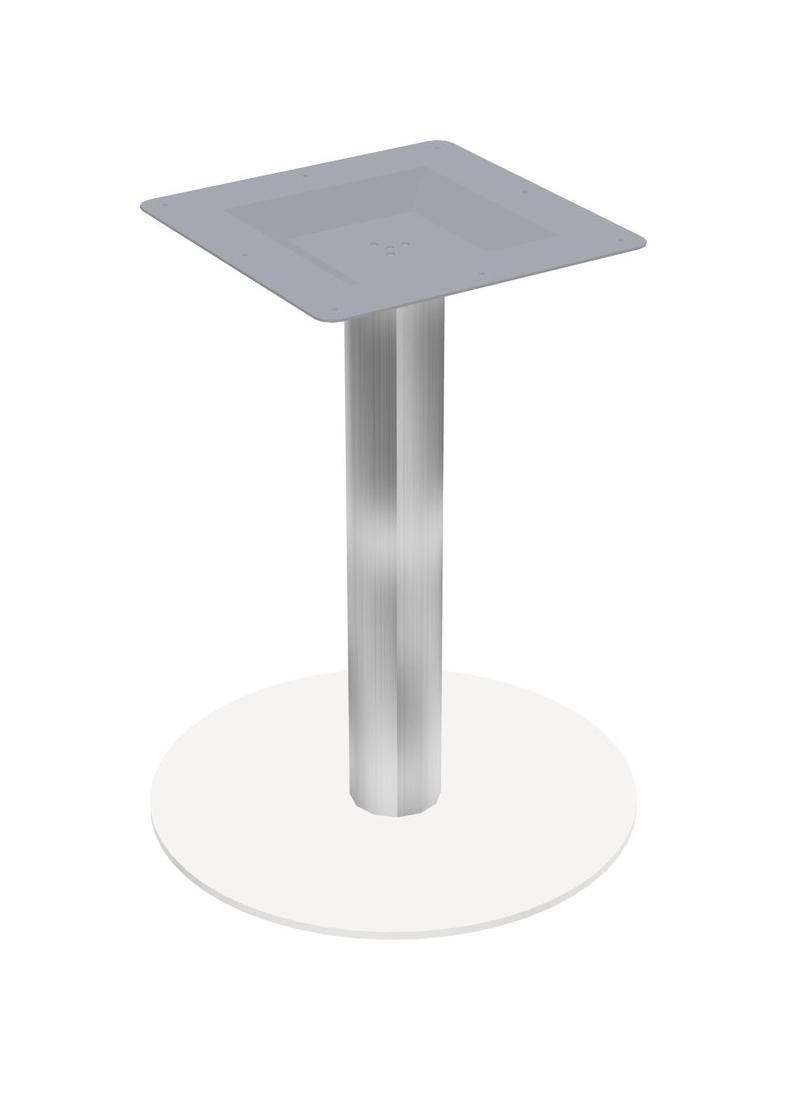 Piètement De Table Modulaire Pour Bureaux, Restaurants, Cafétérias, Salles De Pause Et Services De Restauration, Avec Plateau Gris, Pieds Ronds Chromés Et Base Ronde Blanche
