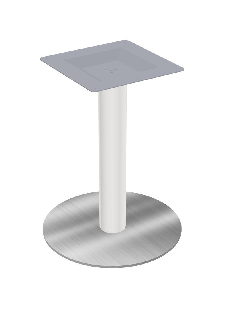 Piètement De Table Modulaire Pour Bureaux, Restaurants, Cafétérias, Salles De Pause Et Services De Restauration, Avec Plateau Gris, Pieds Ronds Blancs Et Base Ronde Chromée