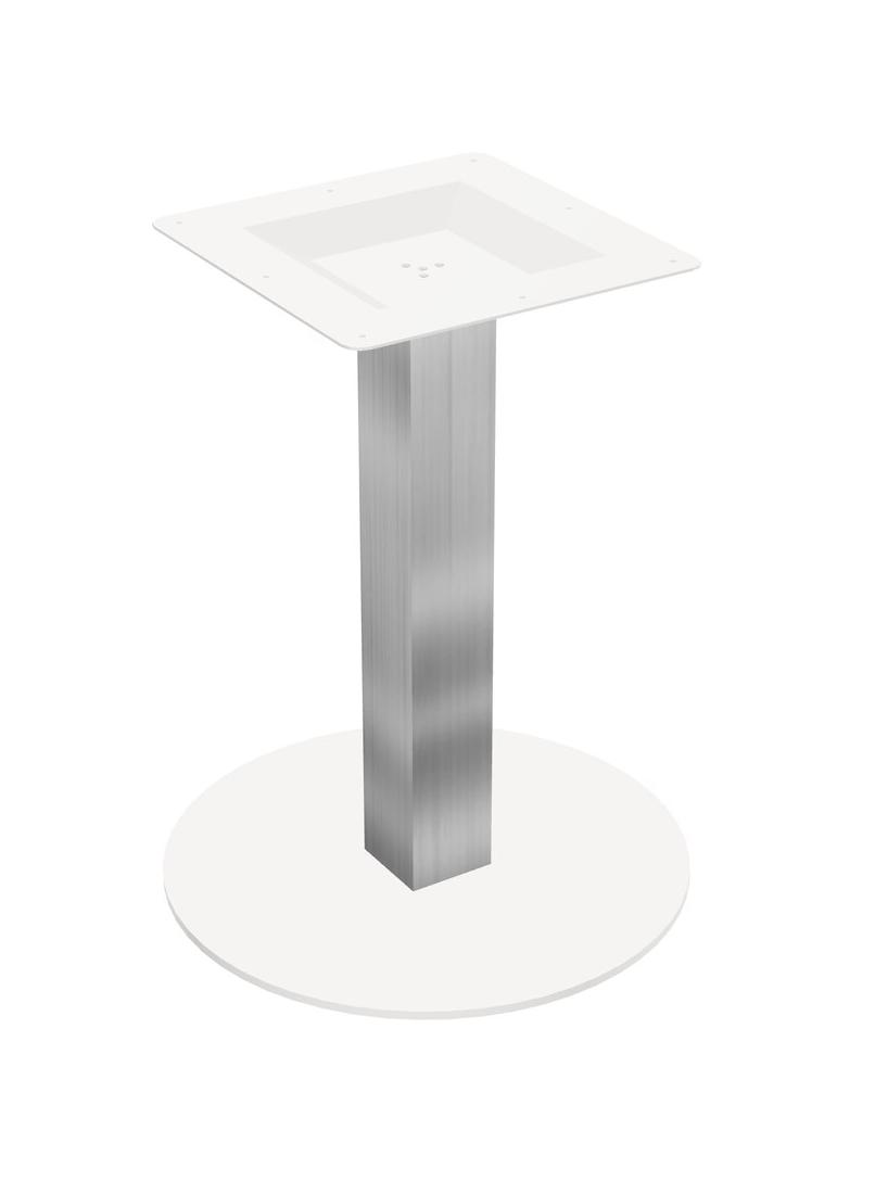 Piètement De Table Modulaire Pour Bureaux, Restaurants, Cafétérias, Salles De Pause Et Services De Restauration, Avec Plateau Blanc, Pieds Carrés Chromés Et Base Ronde Blanche