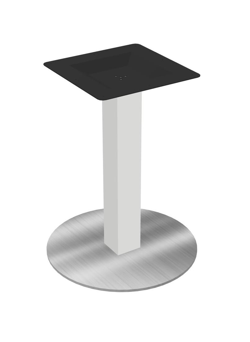 Piètement De Table Modulaire Pour Bureaux, Restaurants, Cafétérias, Salles De Pause Et Services De Restauration, Avec Plateau Noir, Pieds Carrés Blancs Et Base Ronde Chromée