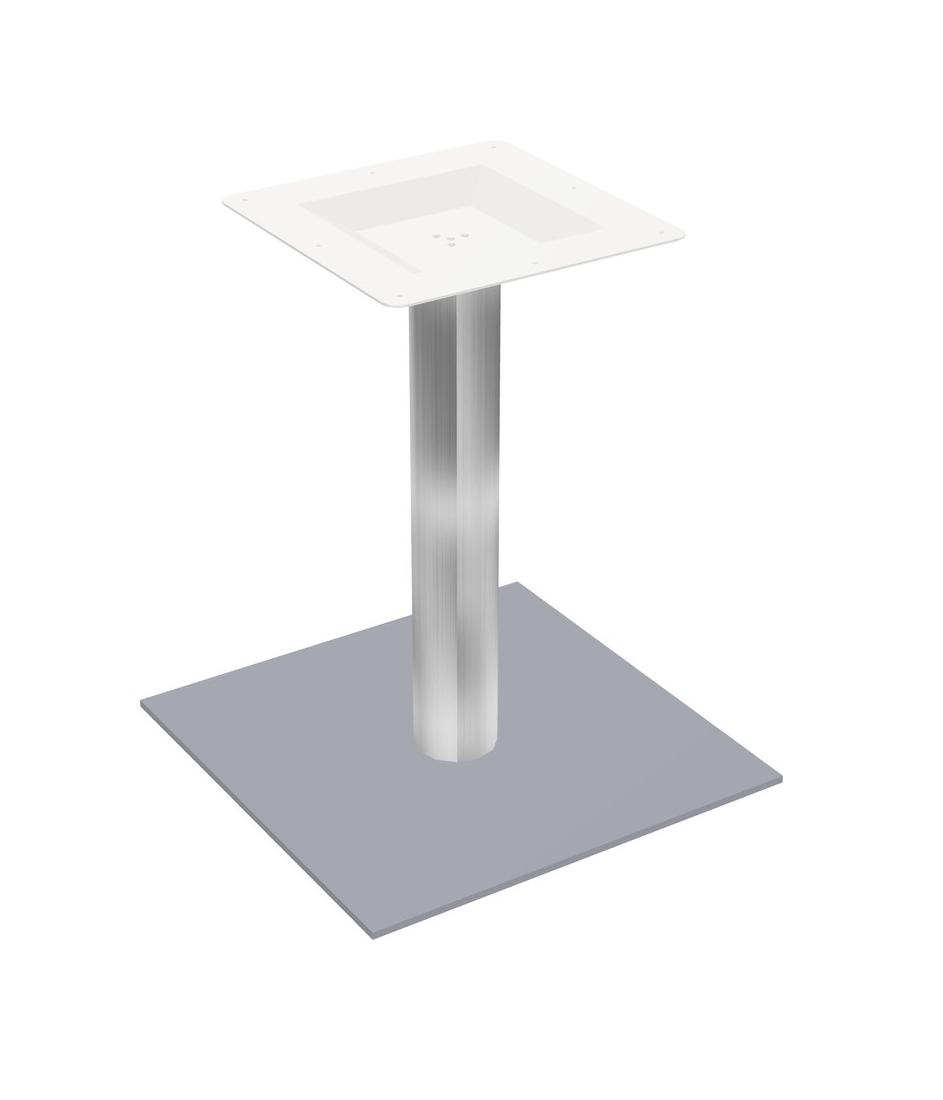 Piètement De Table Modulaire Pour Bureaux, Restaurants, Cafétérias, Salles De Pause Et Services De Restauration, Avec Plateau Blanc, Pieds Ronds Chromés Et Base Carrée Grise