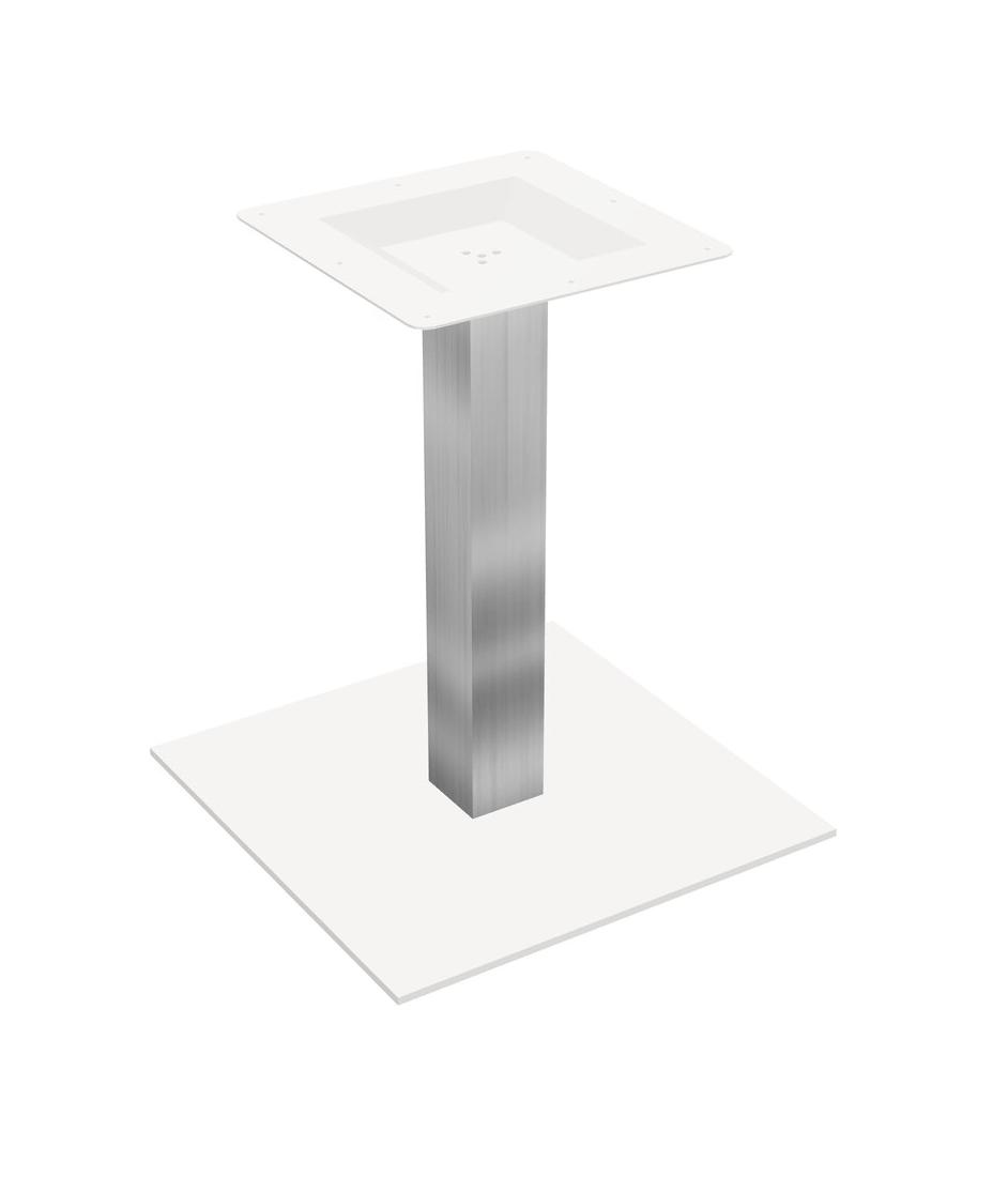 Piètement De Table Modulaire Pour Bureaux, Restaurants, Cafétérias, Salles De Pause Et Services De Restauration, Avec Plateau Blanc, Pieds Carrés Chromés Et Base Carrée Blanche
