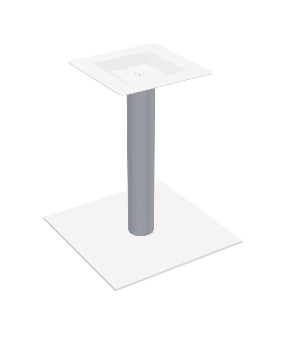 Piètement De Table Modulaire Pour Bureaux, Restaurants, Cafétérias, Salles De Pause Et Services De Restauration, Avec Plateau Blanc, Pieds Ronds Gris Et Base Carrée Blanche