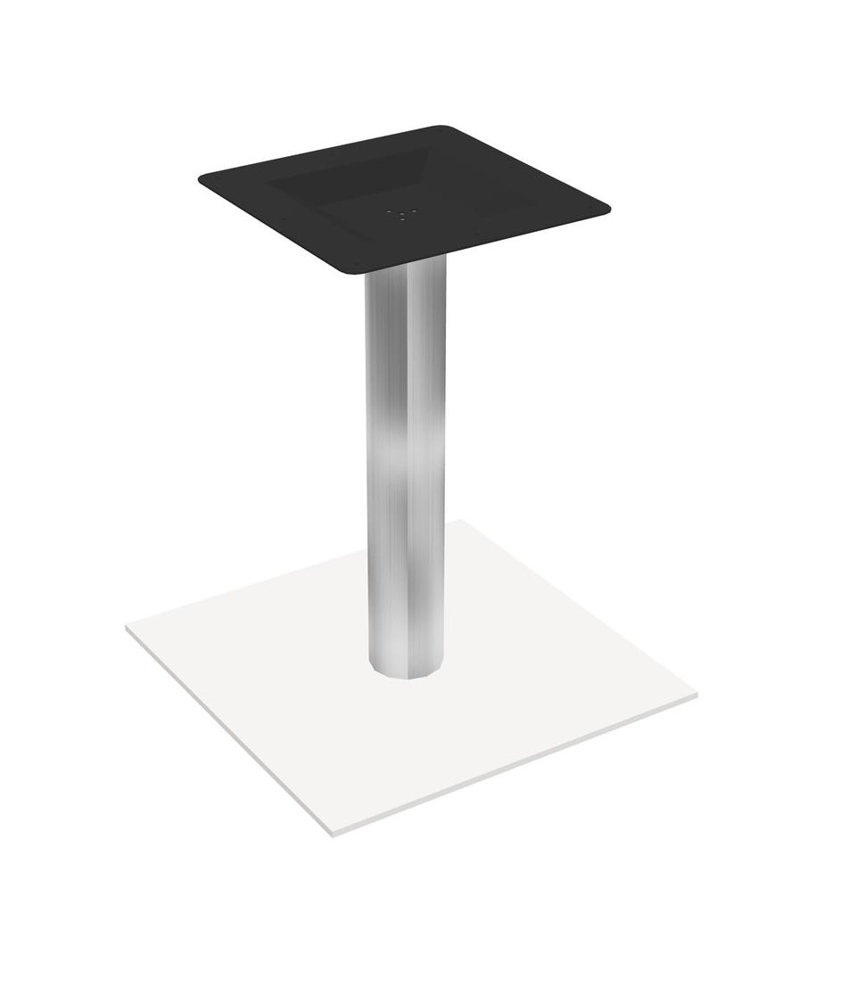 Piètement De Table Modulaire Pour Bureaux, Restaurants, Cafétérias, Salles De Pause Et Services De Restauration, Avec Plateau Noir, Pieds Ronds Chromés Et Base Carrée Blanche