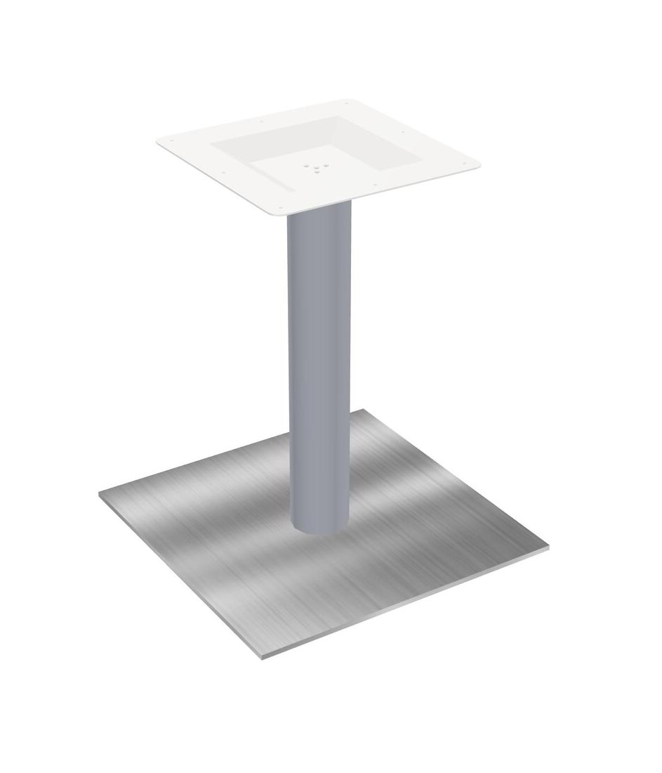 Piètement De Table Modulaire Pour Bureaux, Restaurants, Cafétérias, Salles De Pause Et Services De Restauration, Avec Plateau Blanc, Pieds Ronds Gris Et Base Carrée Chromée