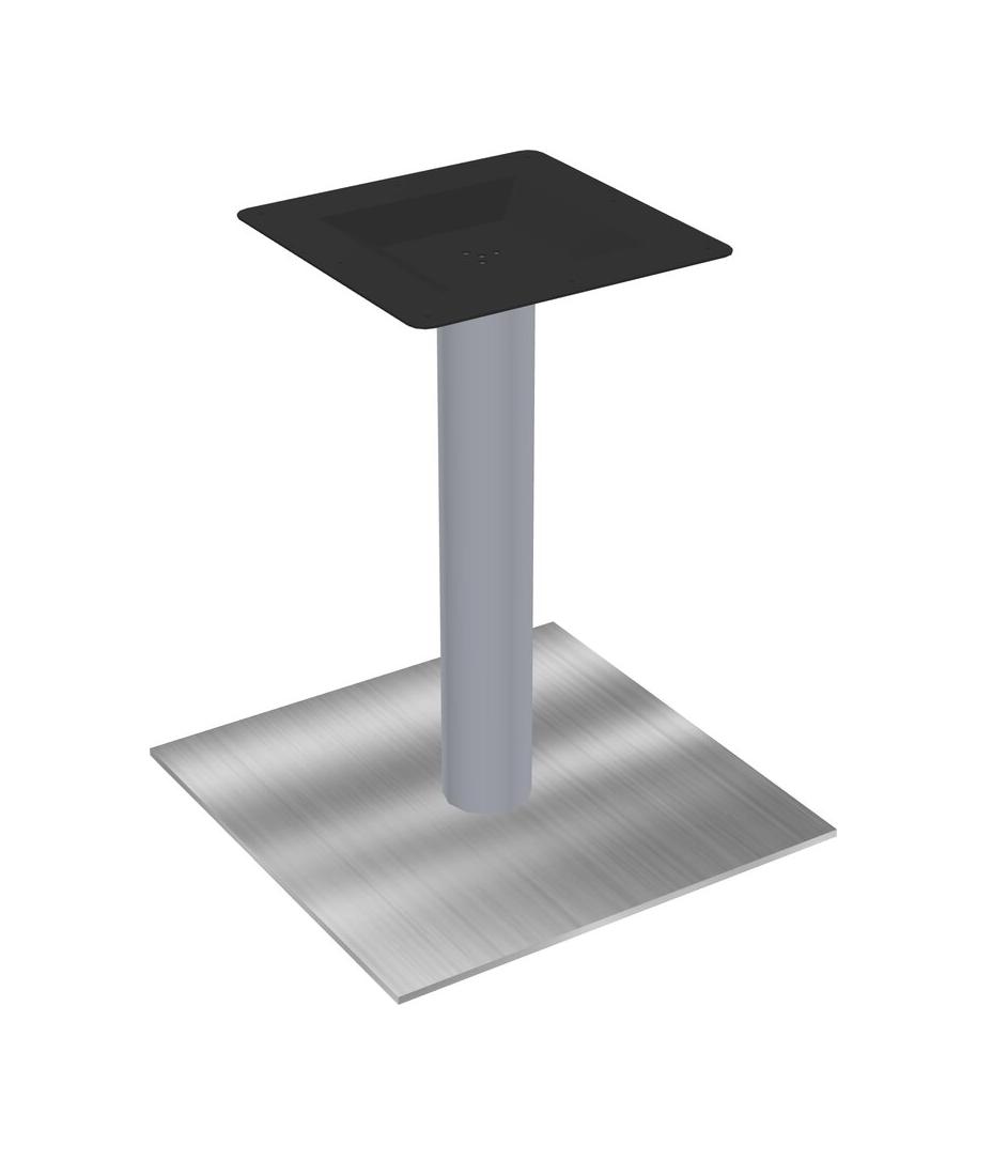 Piètement De Table Modulaire Pour Bureaux, Restaurants, Cafétérias, Salles De Pause Et Services De Restauration, Avec Plateau Noir, Pieds Ronds Gris Et Base Carrée Chromée