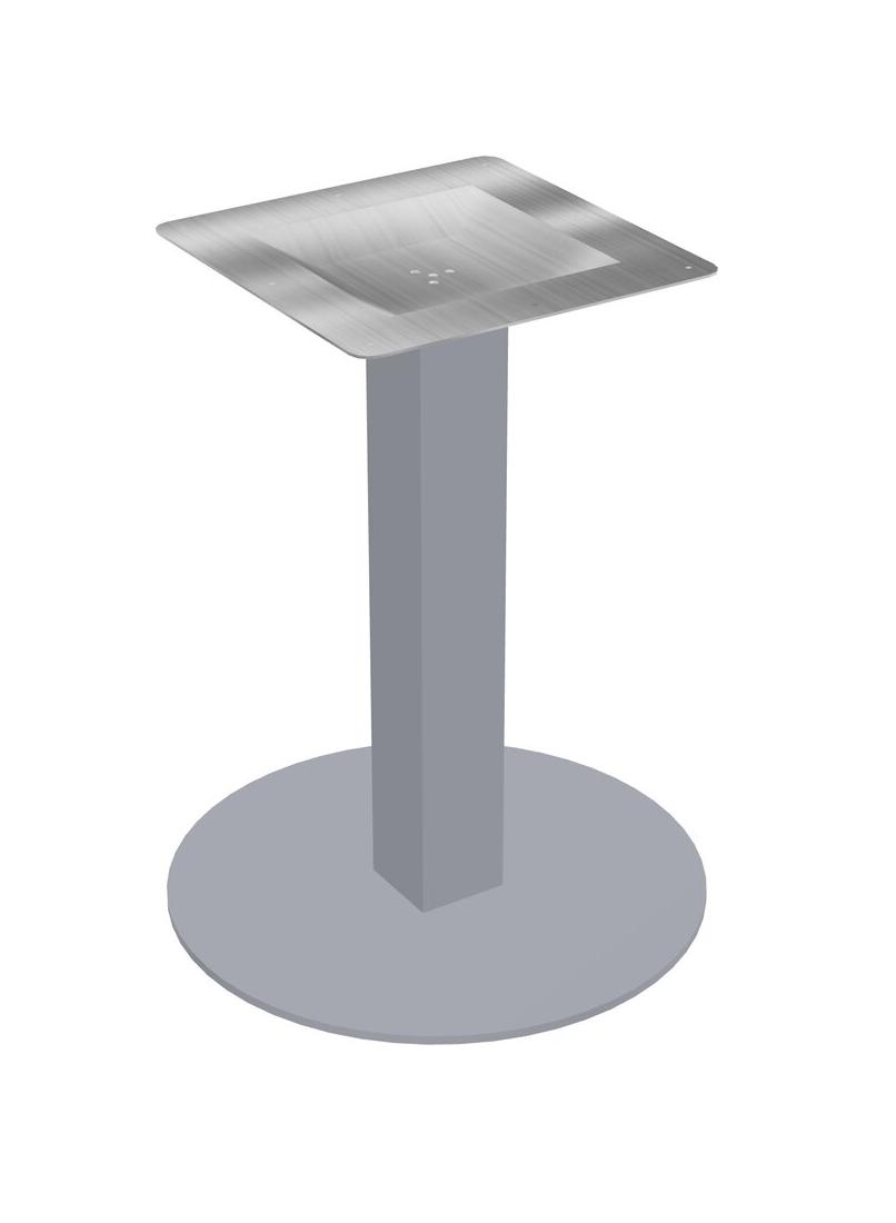 Piètement De Table Modulaire Pour Bureaux, Restaurants, Cafétérias, Salles De Pause Et Services De Restauration, Avec Plateau Chromé, Pieds Carrés Gris Et Base Ronde Grise