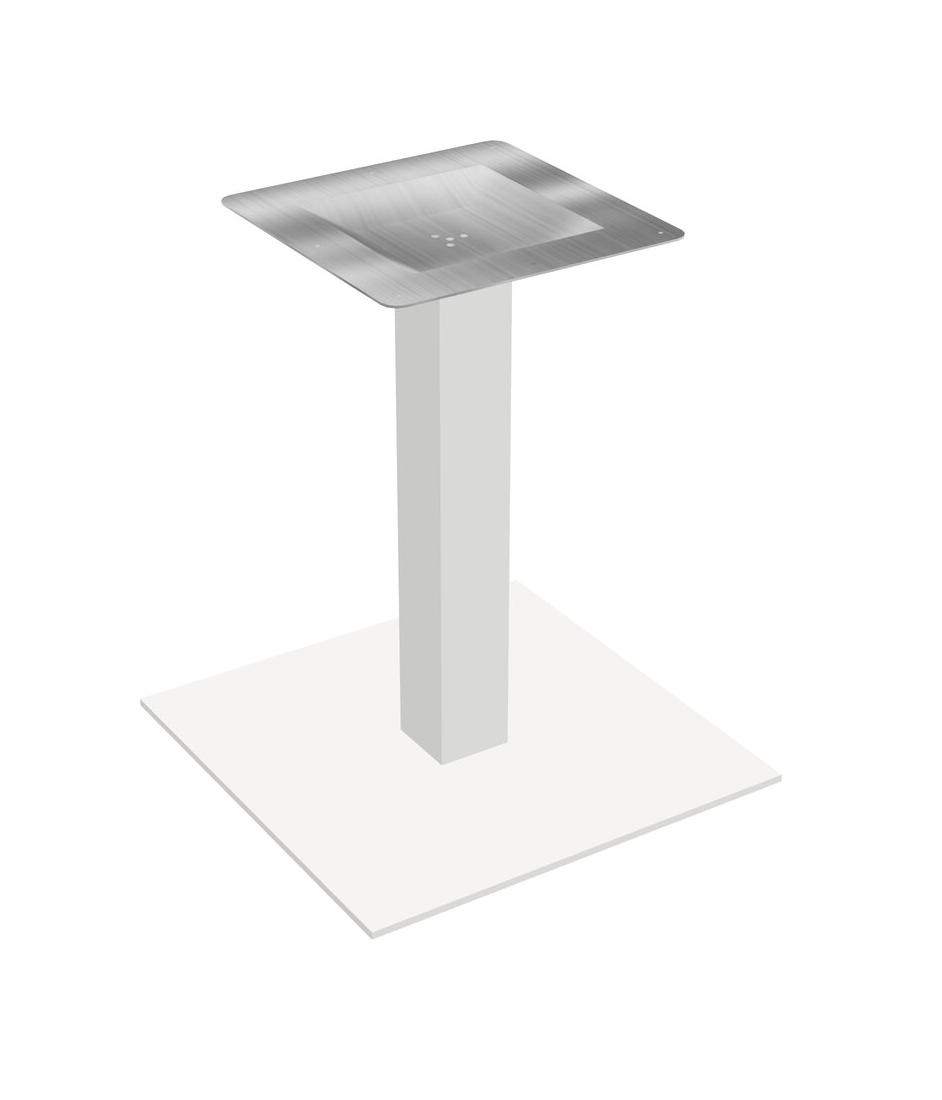 Piètement De Table Modulaire Pour Bureaux, Restaurants, Cafétérias, Salles De Pause Et Services De Restauration, Avec Plateau Chromé, Pieds Carrés Blancs Et Base Carrée Blanche