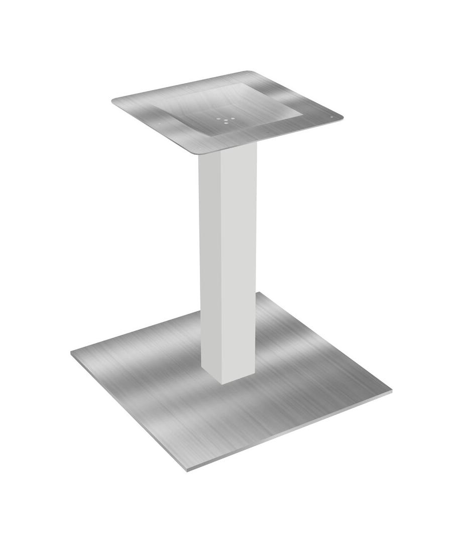 Piètement De Table Modulaire Pour Bureaux, Restaurants, Cafétérias, Salles De Pause Et Services De Restauration, Avec Plateau Chromé, Pieds Carrés Blancs Et Base Carrée Chromée